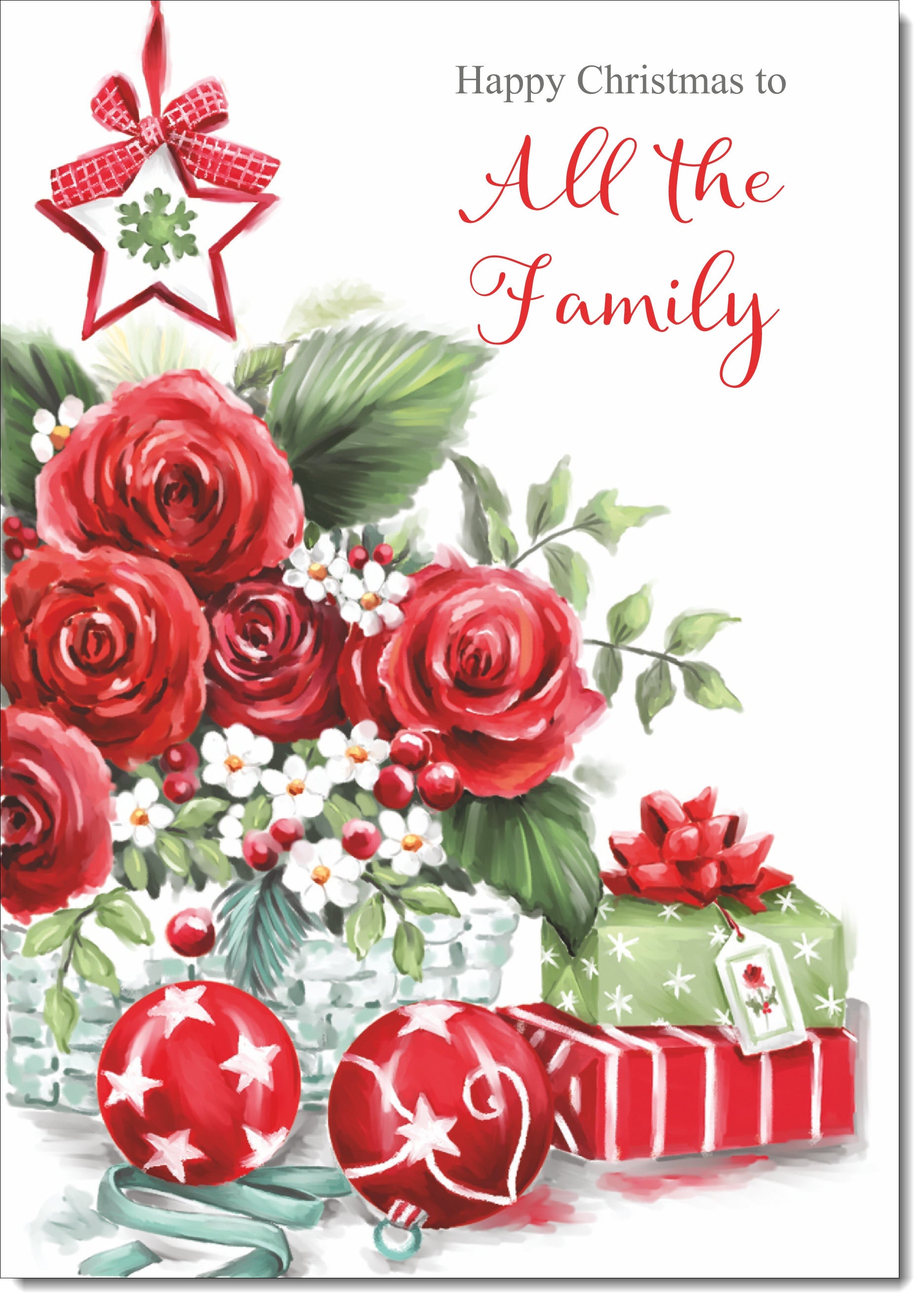 To All The Family Christmas Card Red Christmas Roses