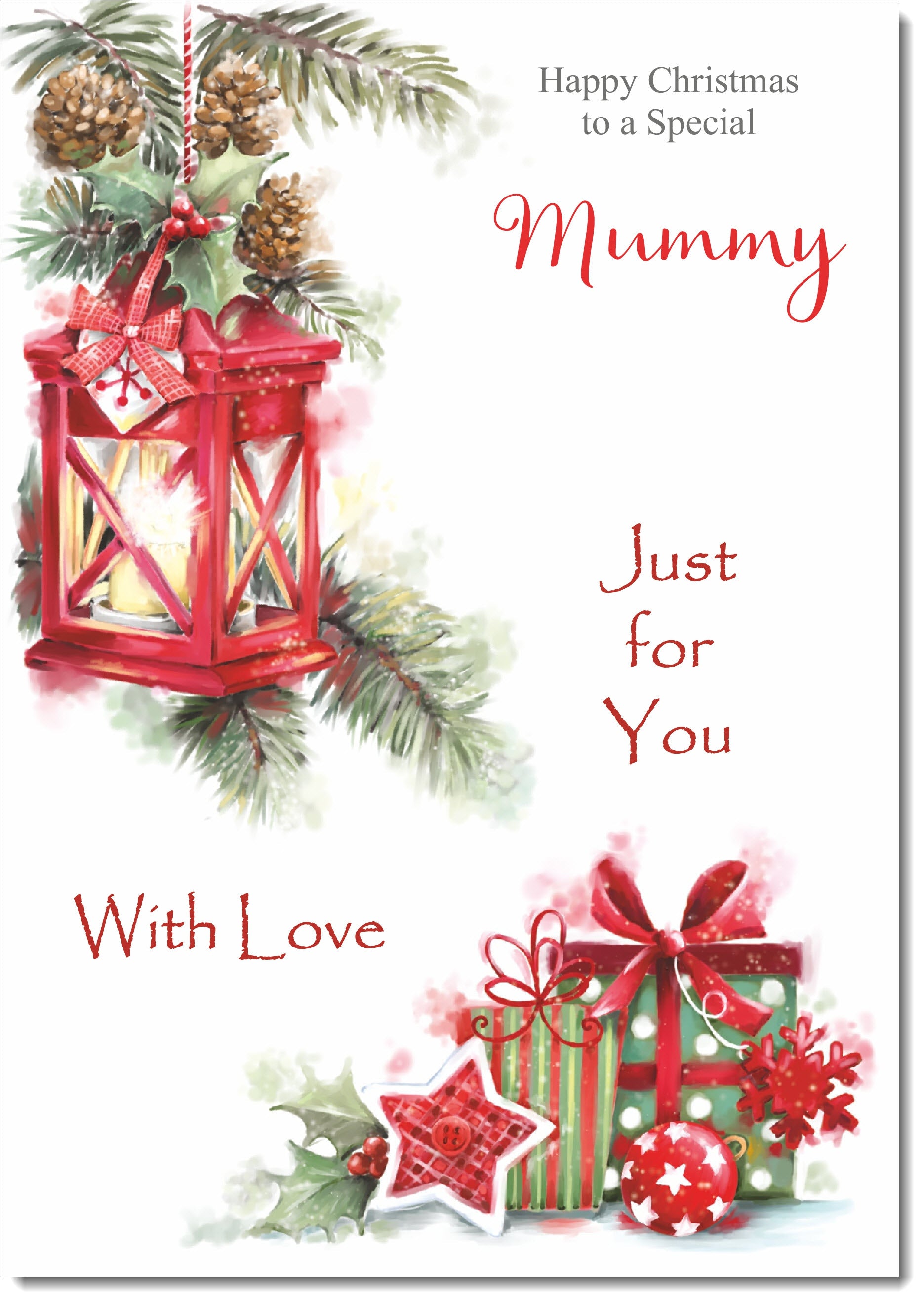 Mummy Christmas Card Red Lantern & Christmas Presents