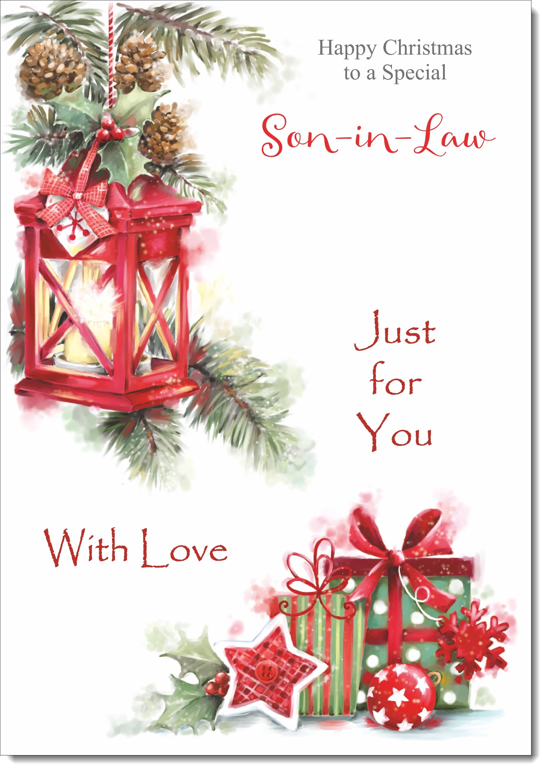 Son-in-Law Christmas Card Red Lantern & Christmas Presents
