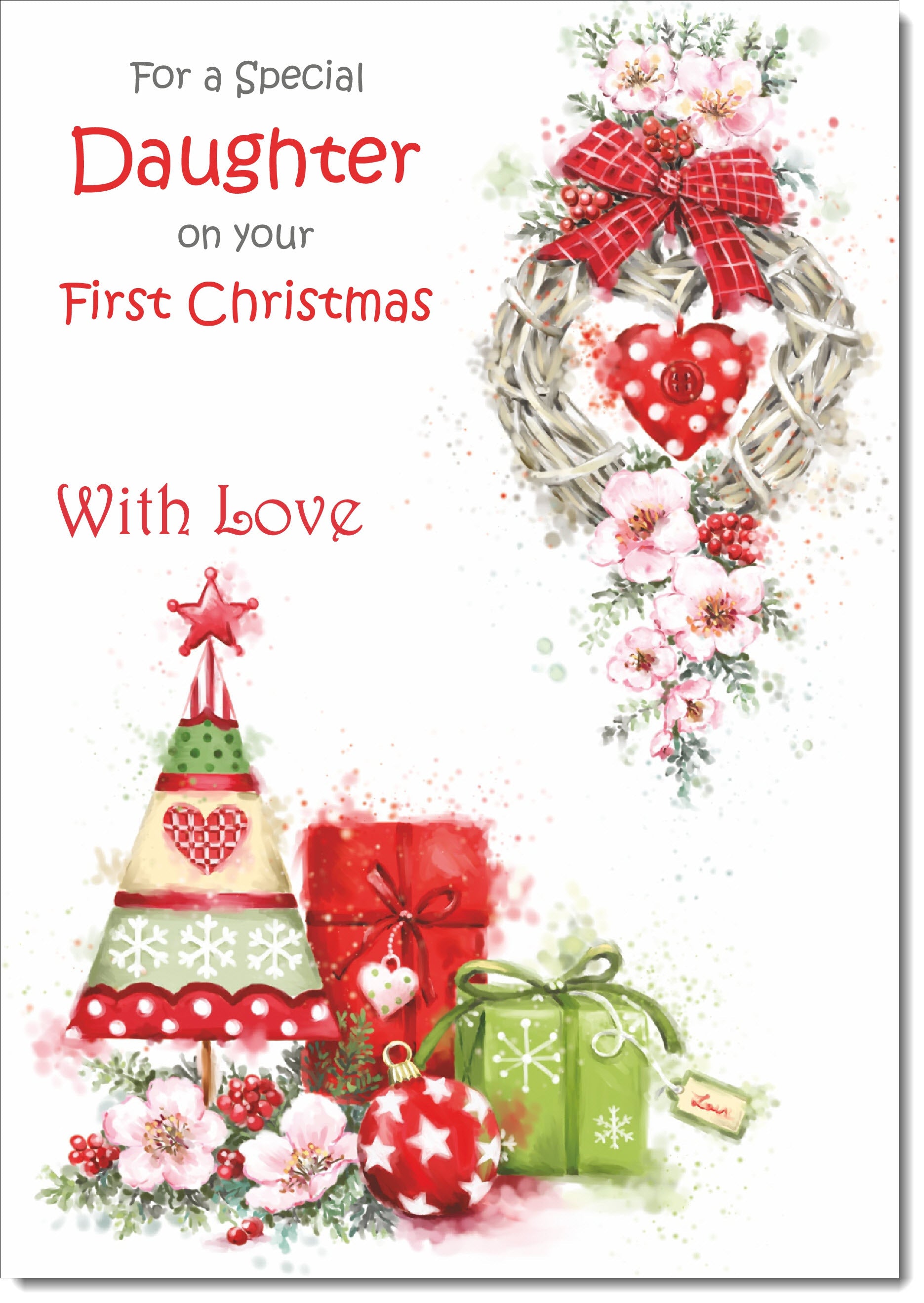 Daughter 1st Christmas Card Hanging Heart Decoration