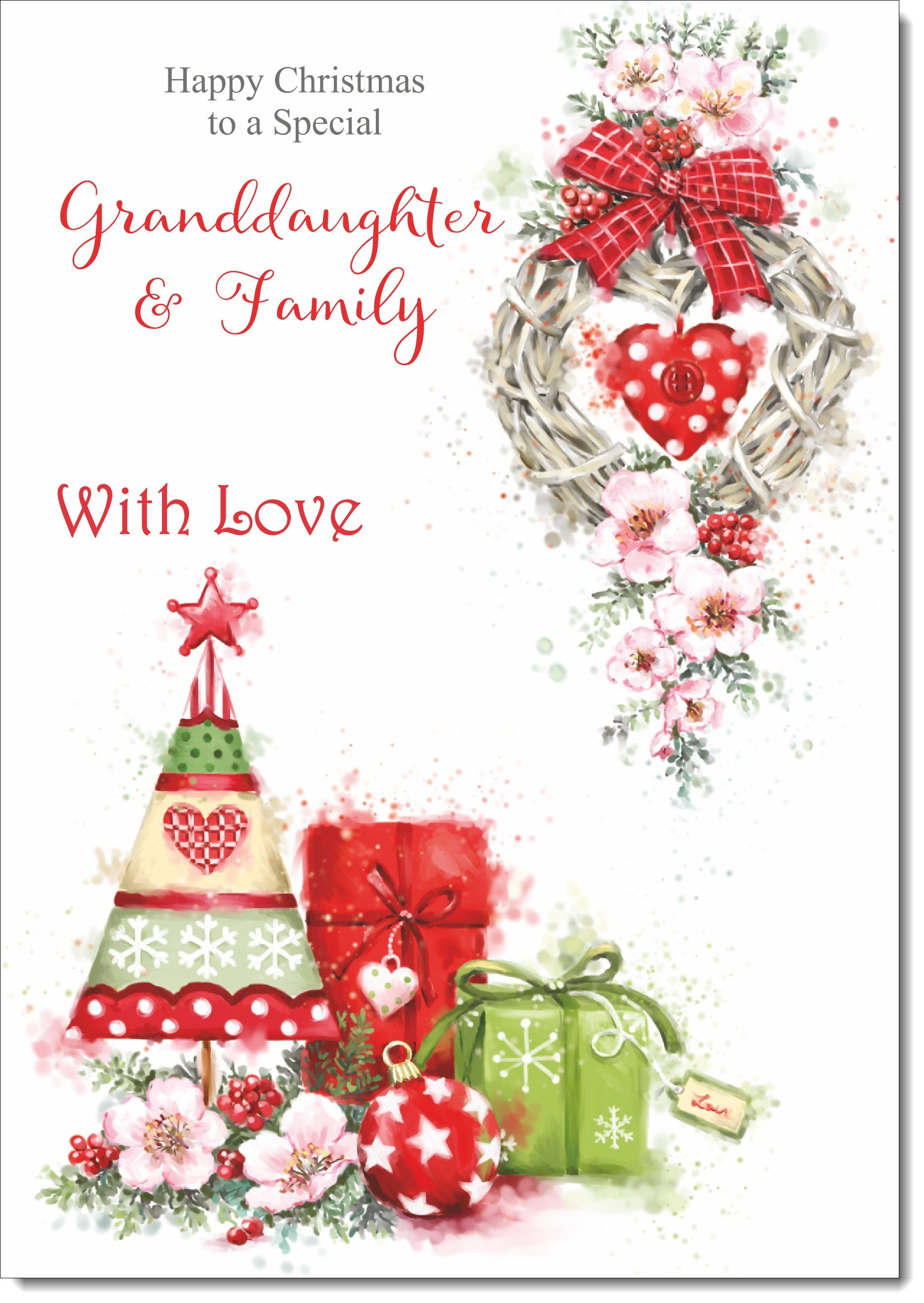 Granddaughter & Family Christmas Card Hanging Heart Decoration