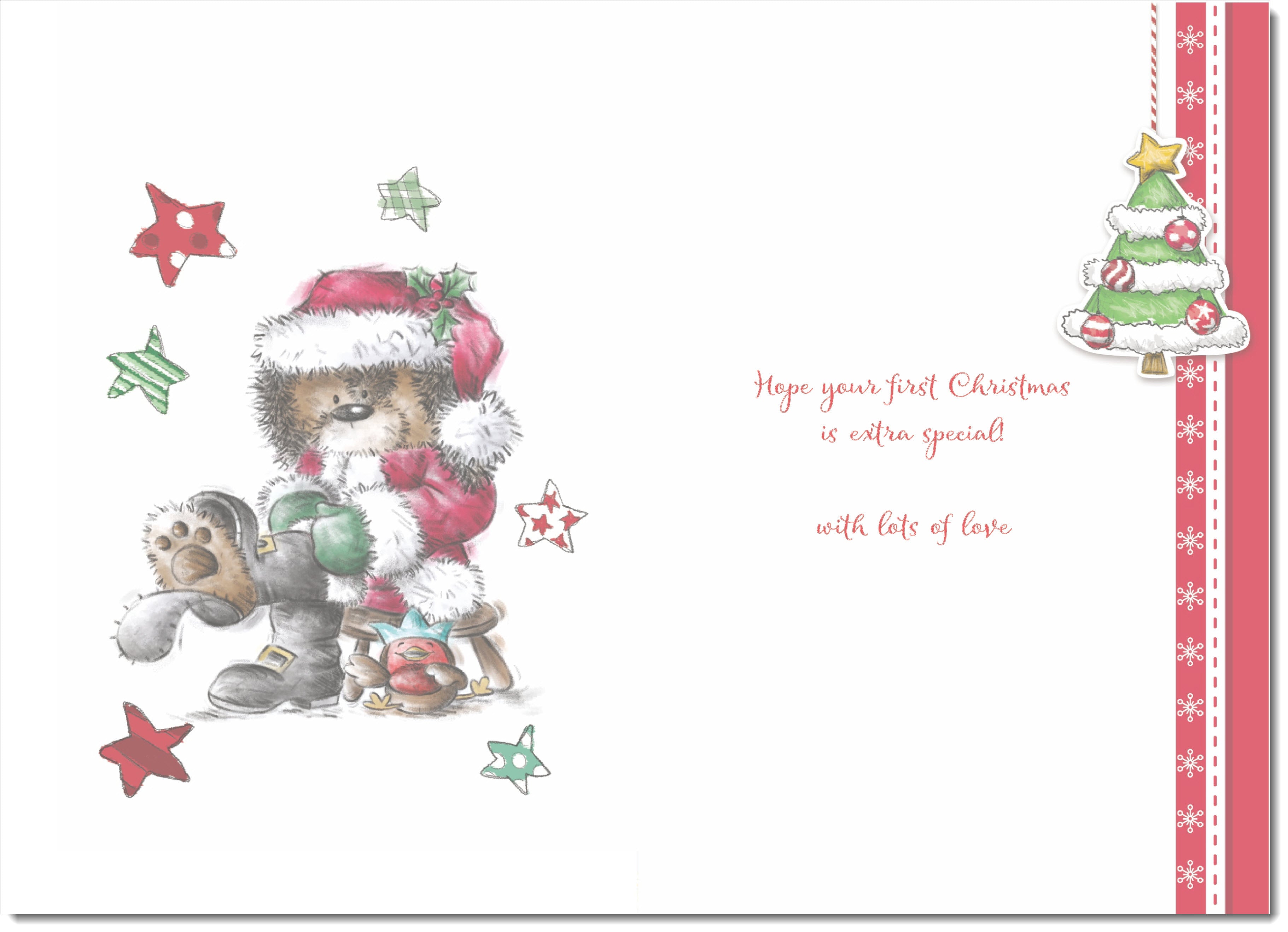 Grandsons 1st Christmas Card Funny Santa Bear and Broken Boot