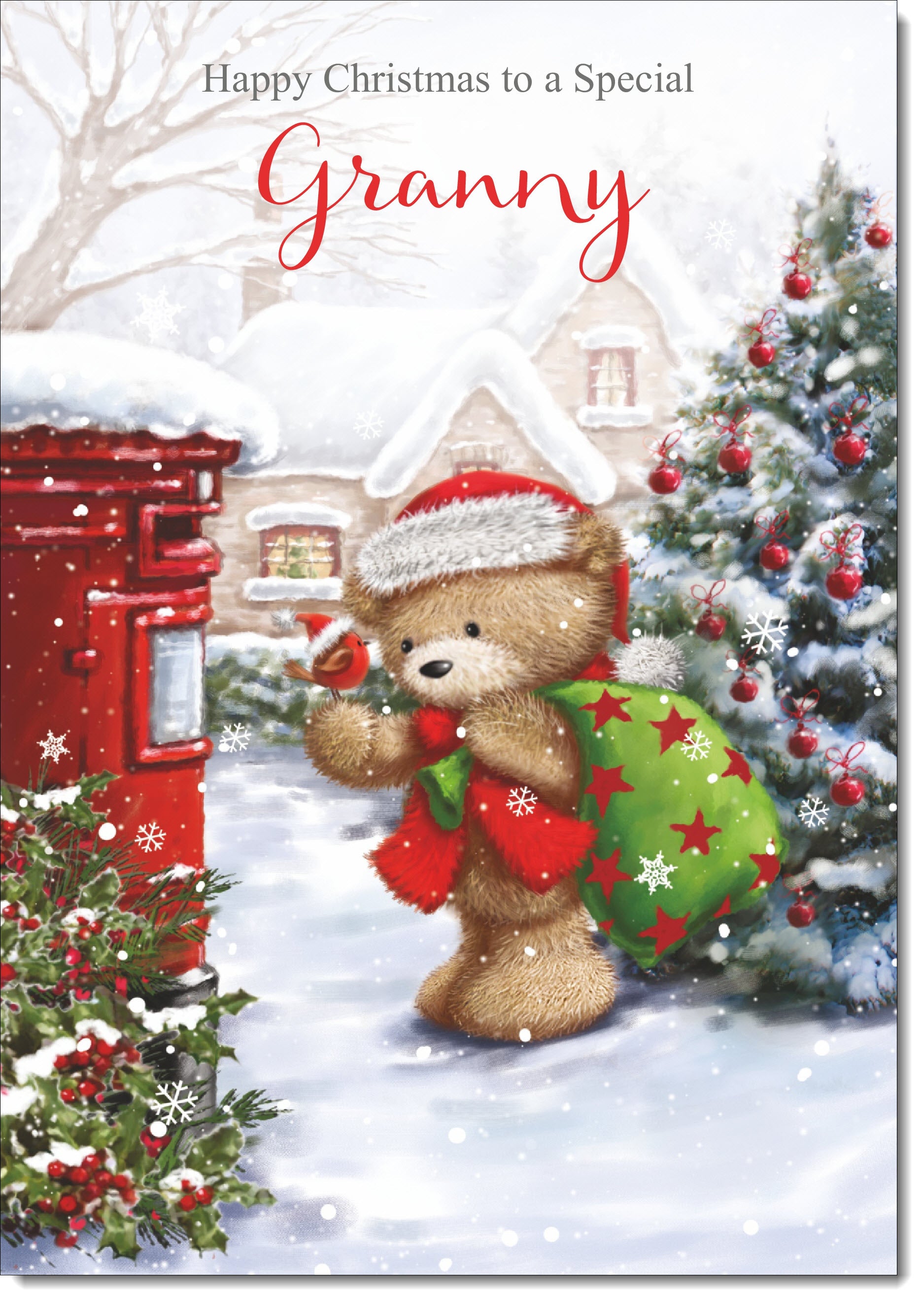 Granny Christmas Card Cute Bear at Post Box
