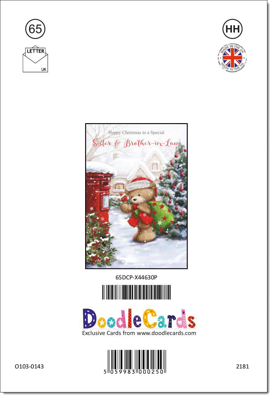 Sister & Brother-in-Law Christmas Card Cute Bear at Post Box