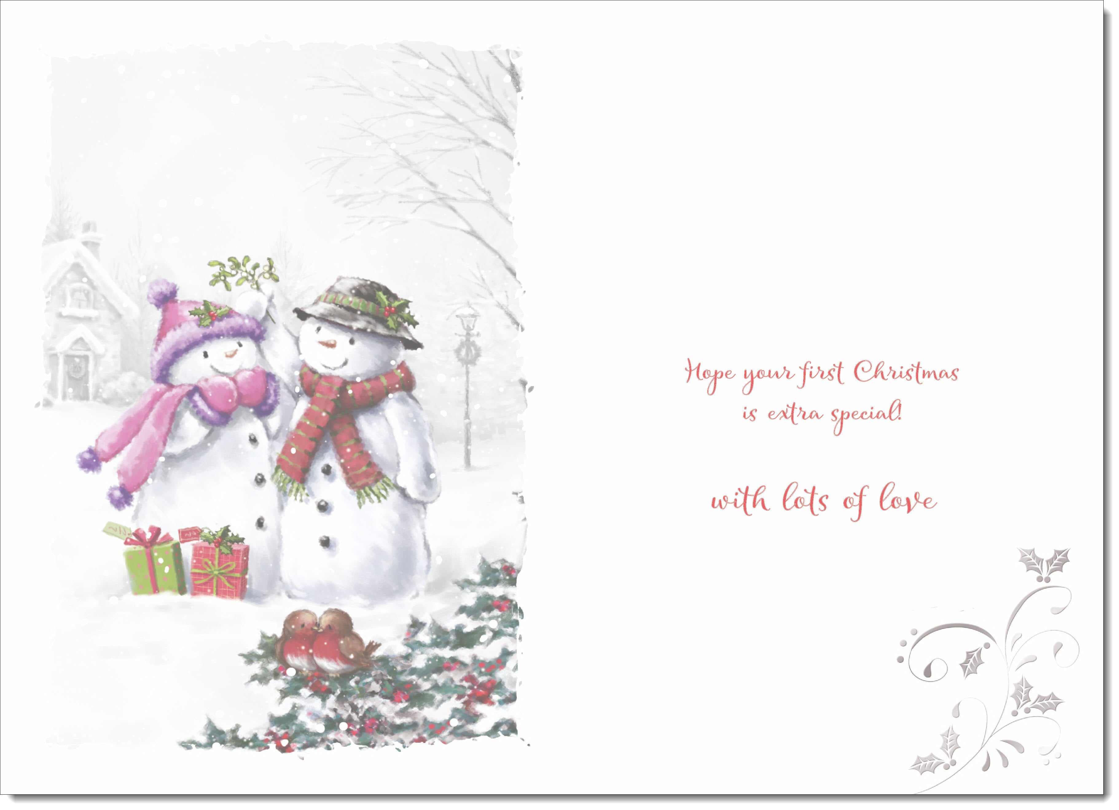 Great Granddaughters 1st Christmas Card Snowman Couple