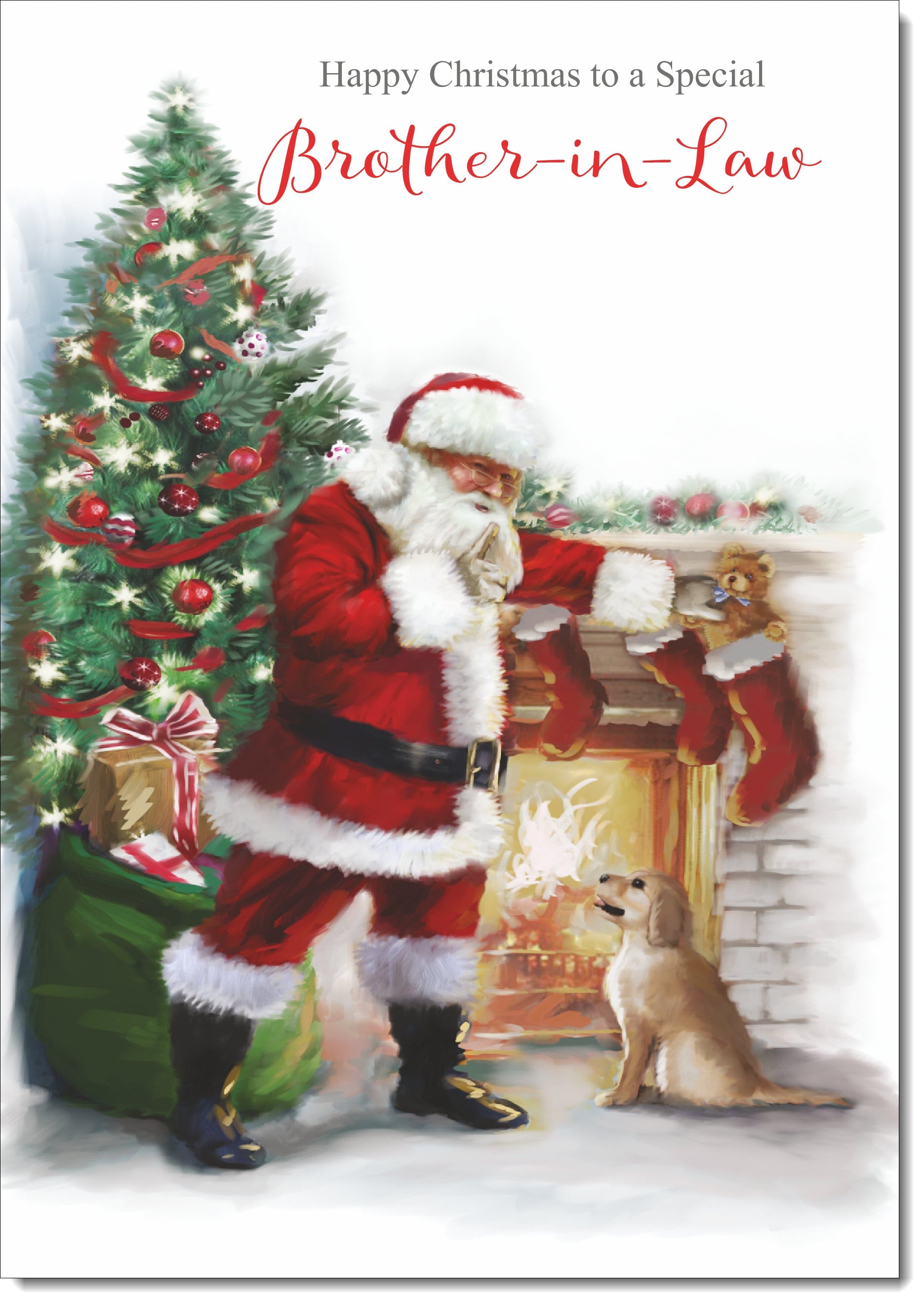 Brother-in-Law Christmas Card Santa by Christmas Tree