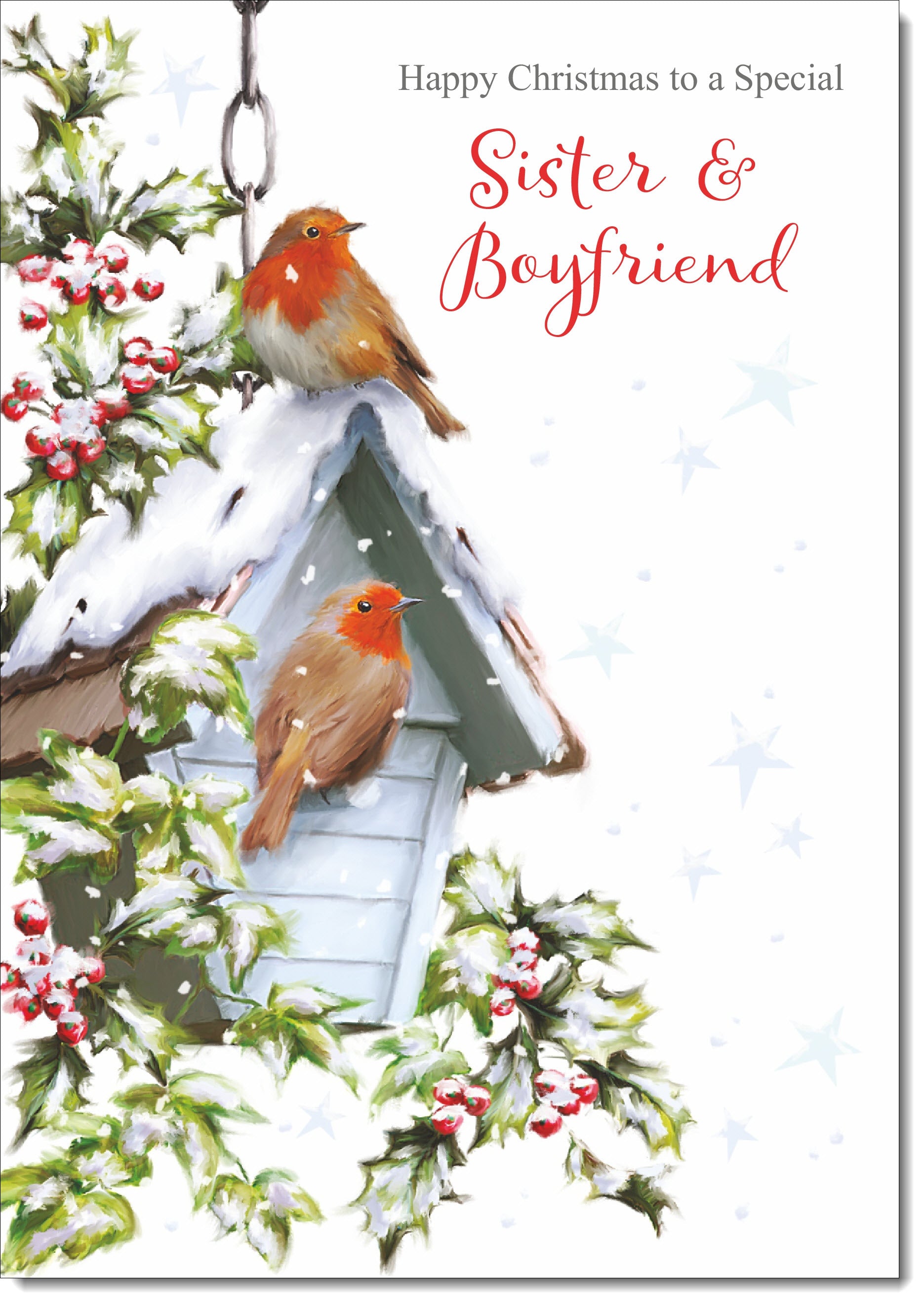Sister & Boyfriend Christmas Card Two Robins in Snow