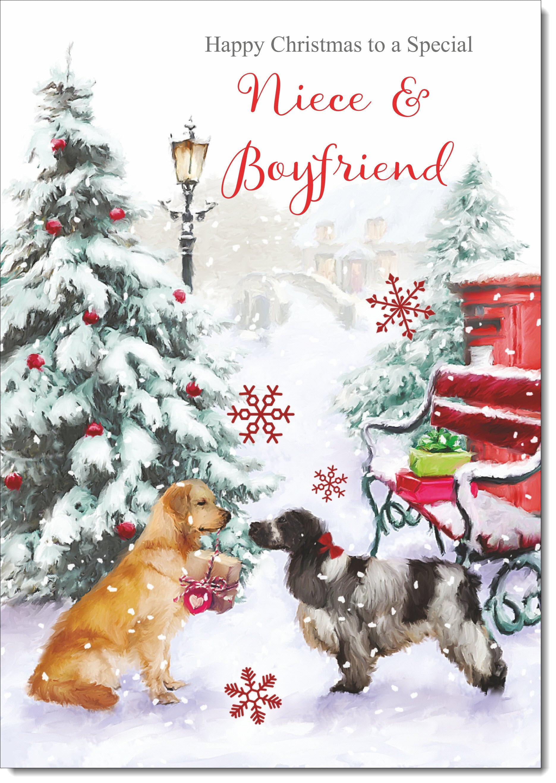 Niece & Boyfriend Christmas Card Two Dogs in Snow