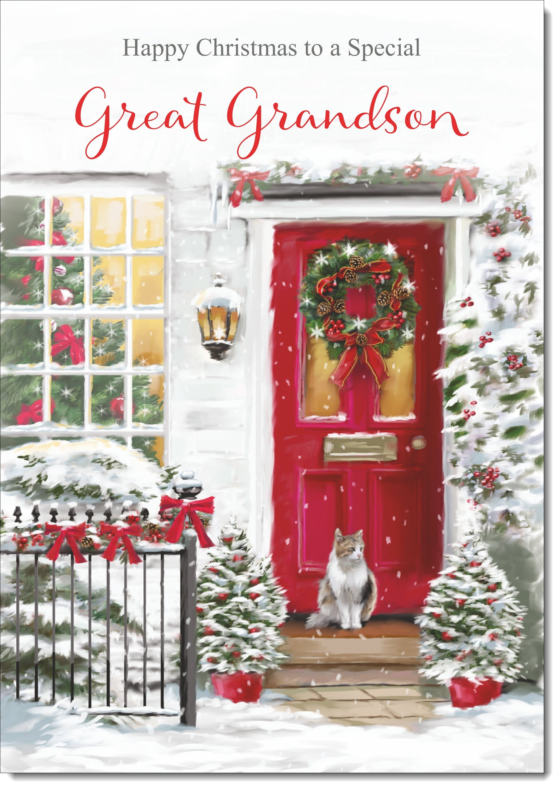 Great Grandson Christmas Card Cat by Snowy Red Door