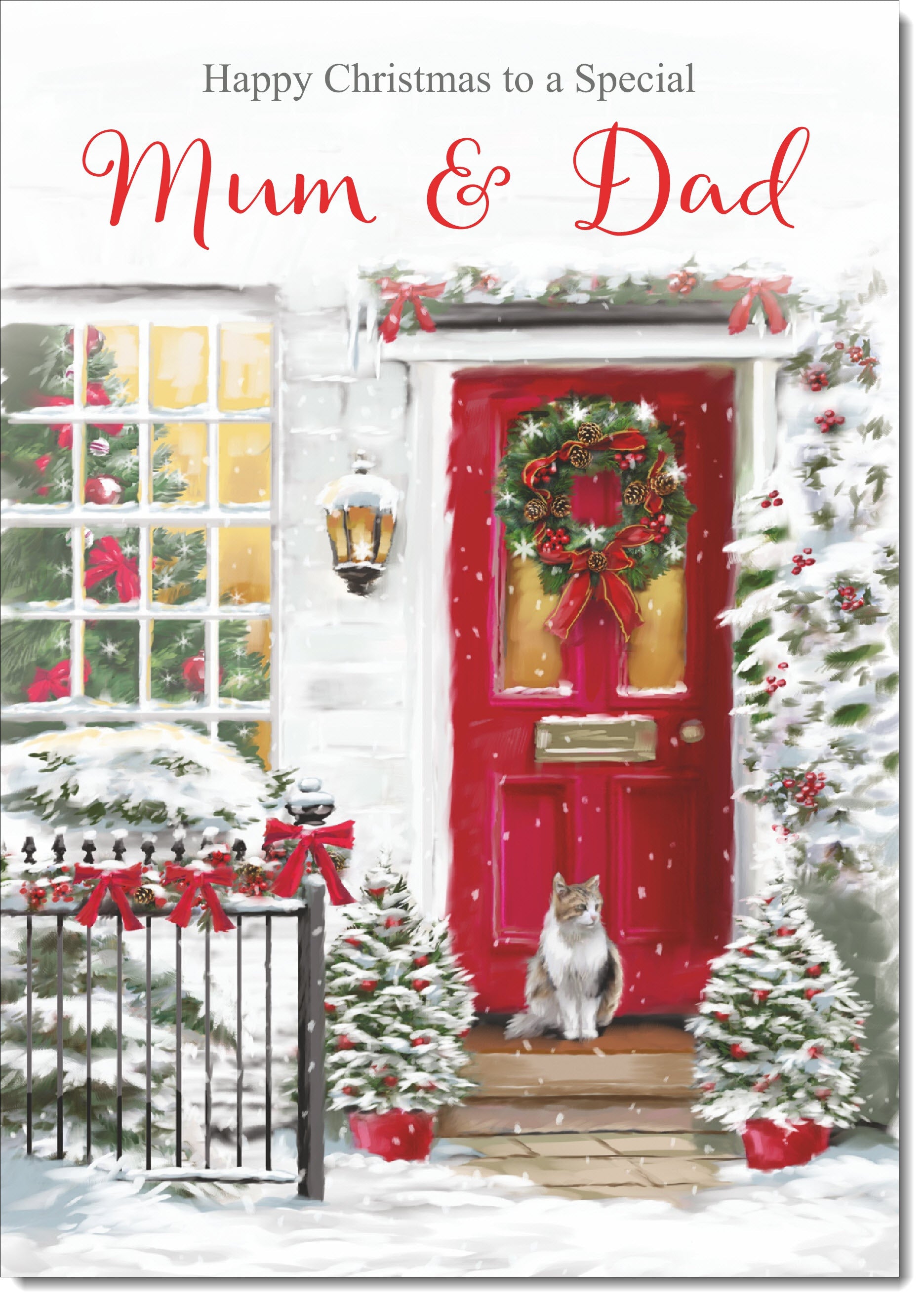 Mum & Dad Christmas Card Cat by Snowy Red Door