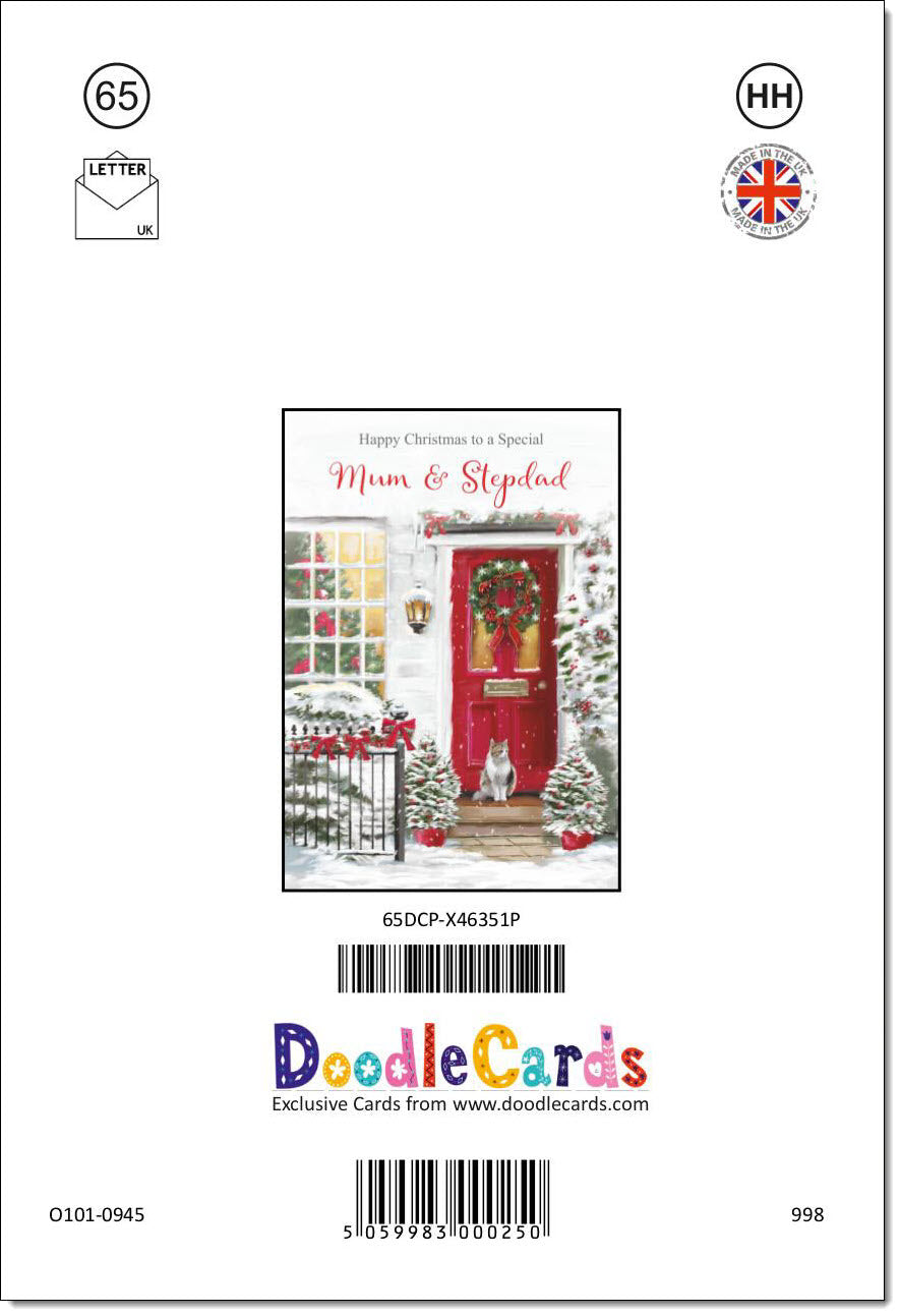 Mum & Stepdad Christmas Card Cat by Snowy Red Door