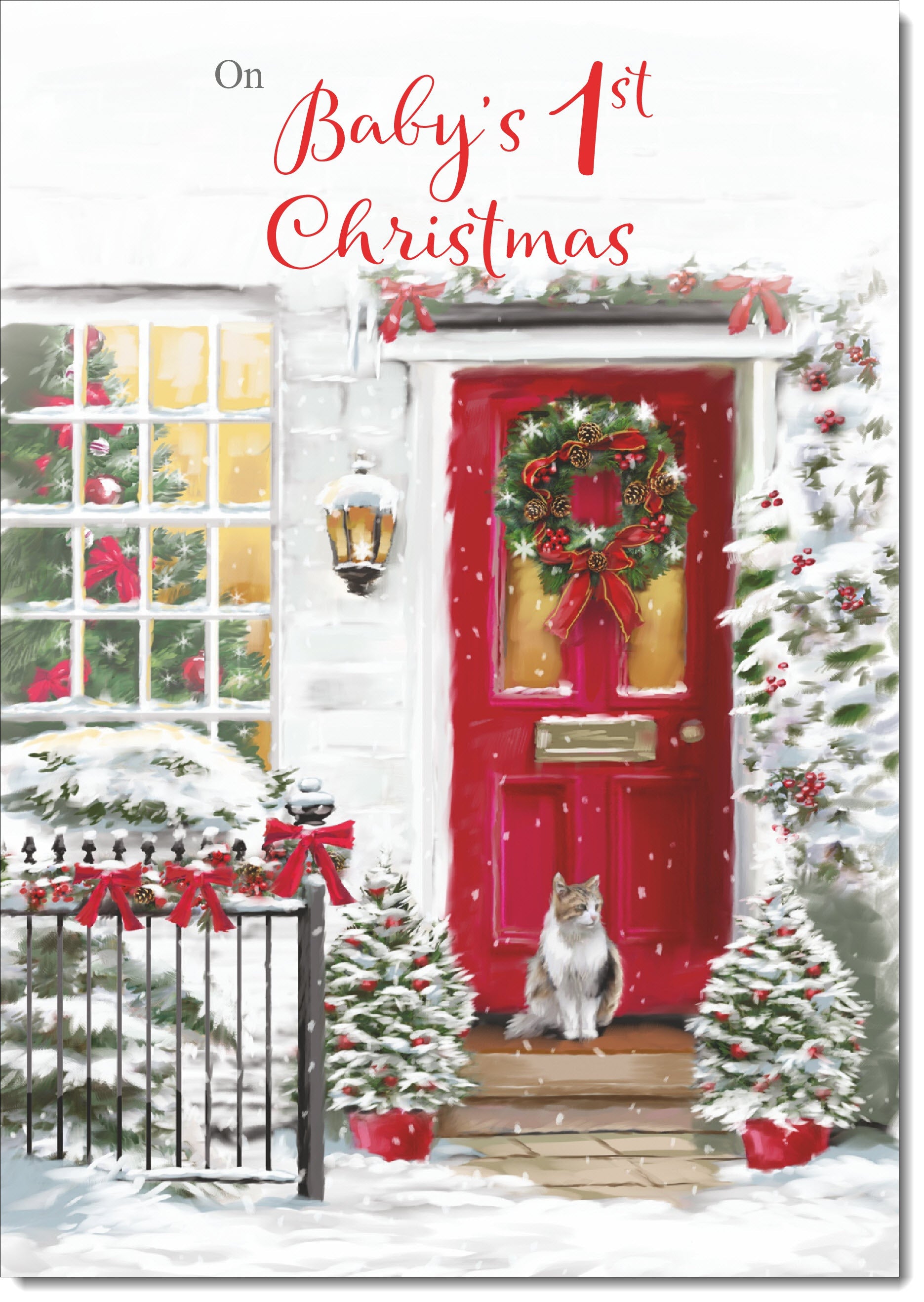 Babys 1st Christmas Card Cat by Snowy Red Door