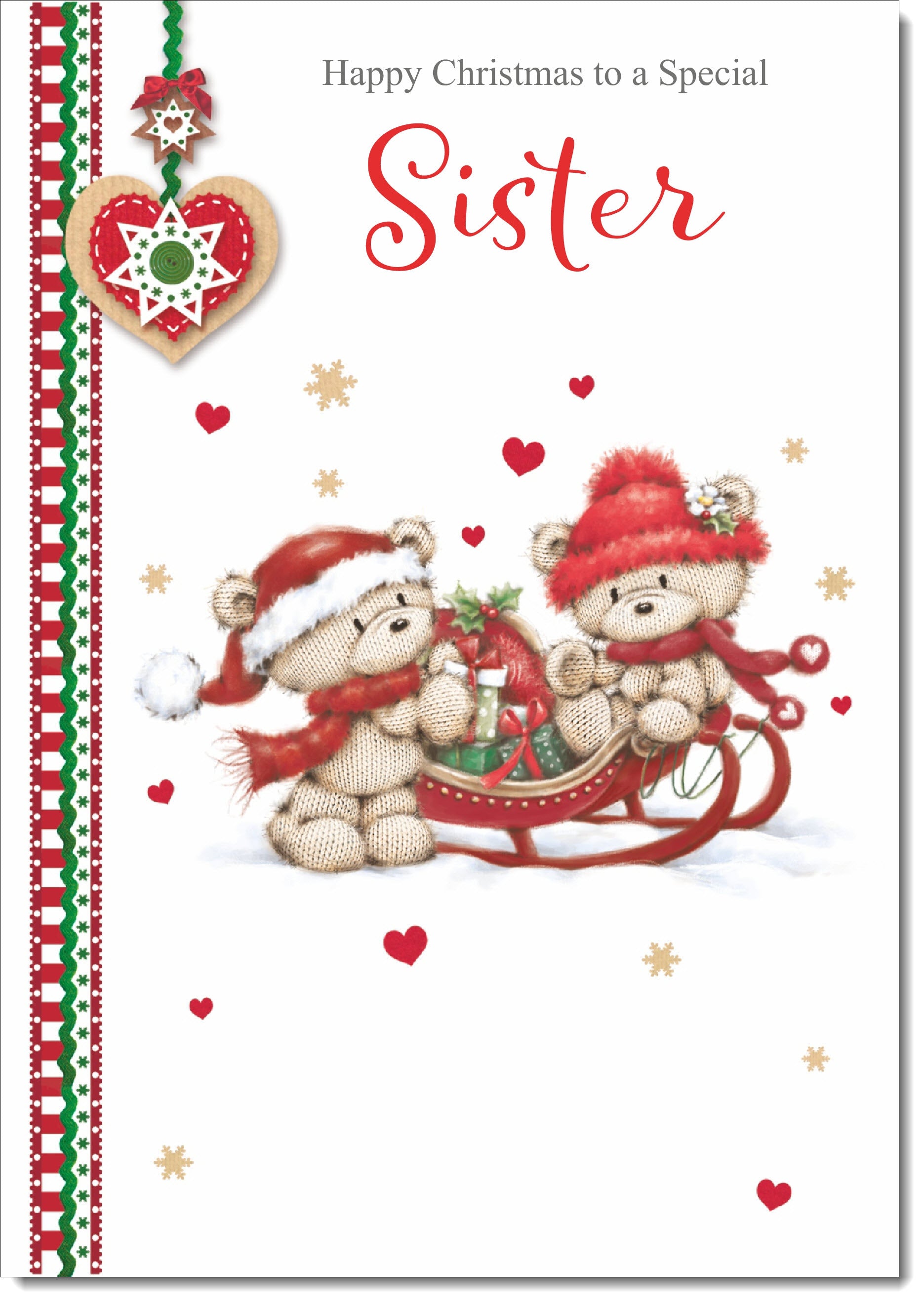 Sister Christmas Card Two Cute Bears on Sled