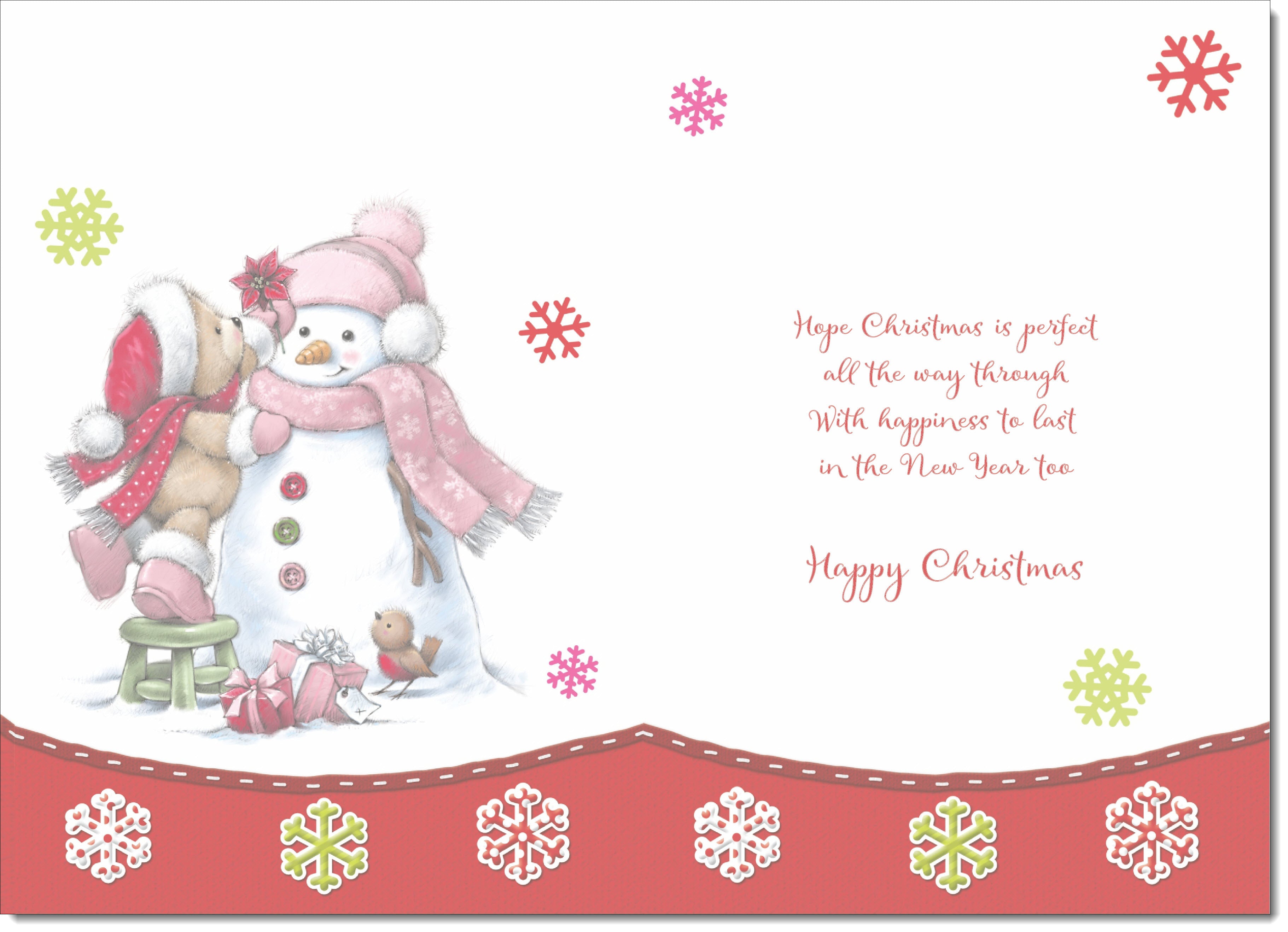 Niece & Husband Christmas Card Cute Bear with Snowman