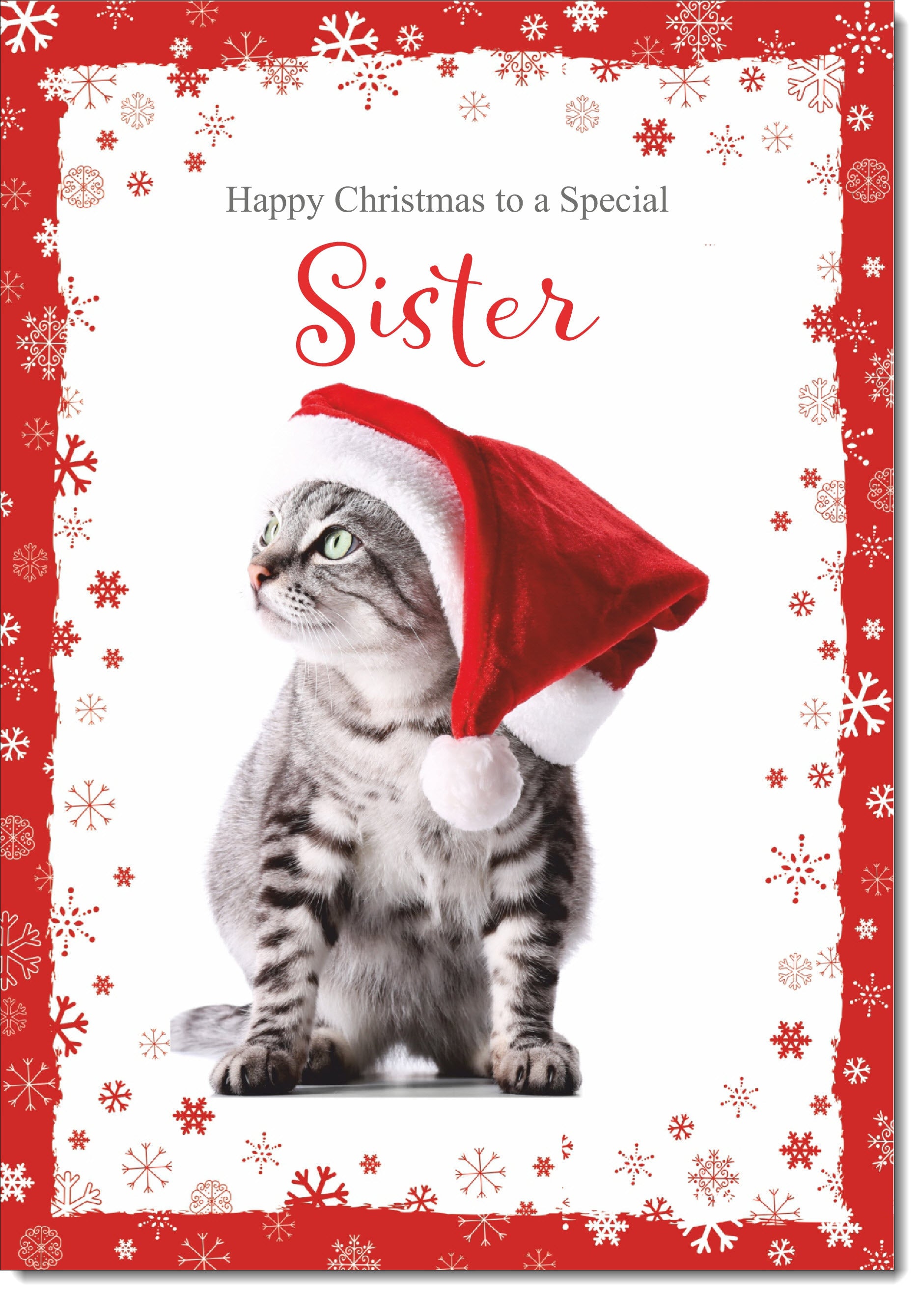 Sister Christmas Card Cat with Santa Hat
