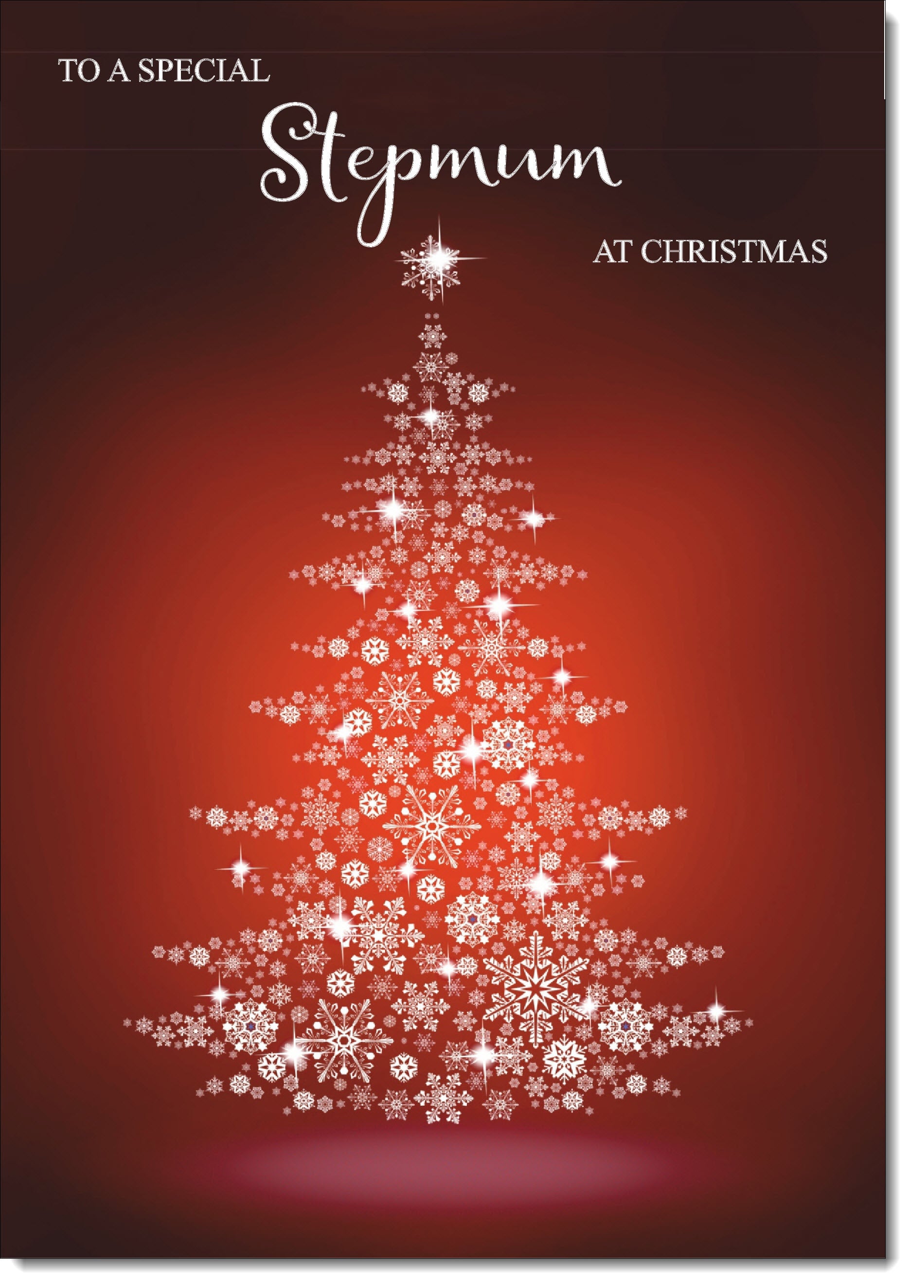 Stepmum Christmas Card Red Snowflake Christmas Tree