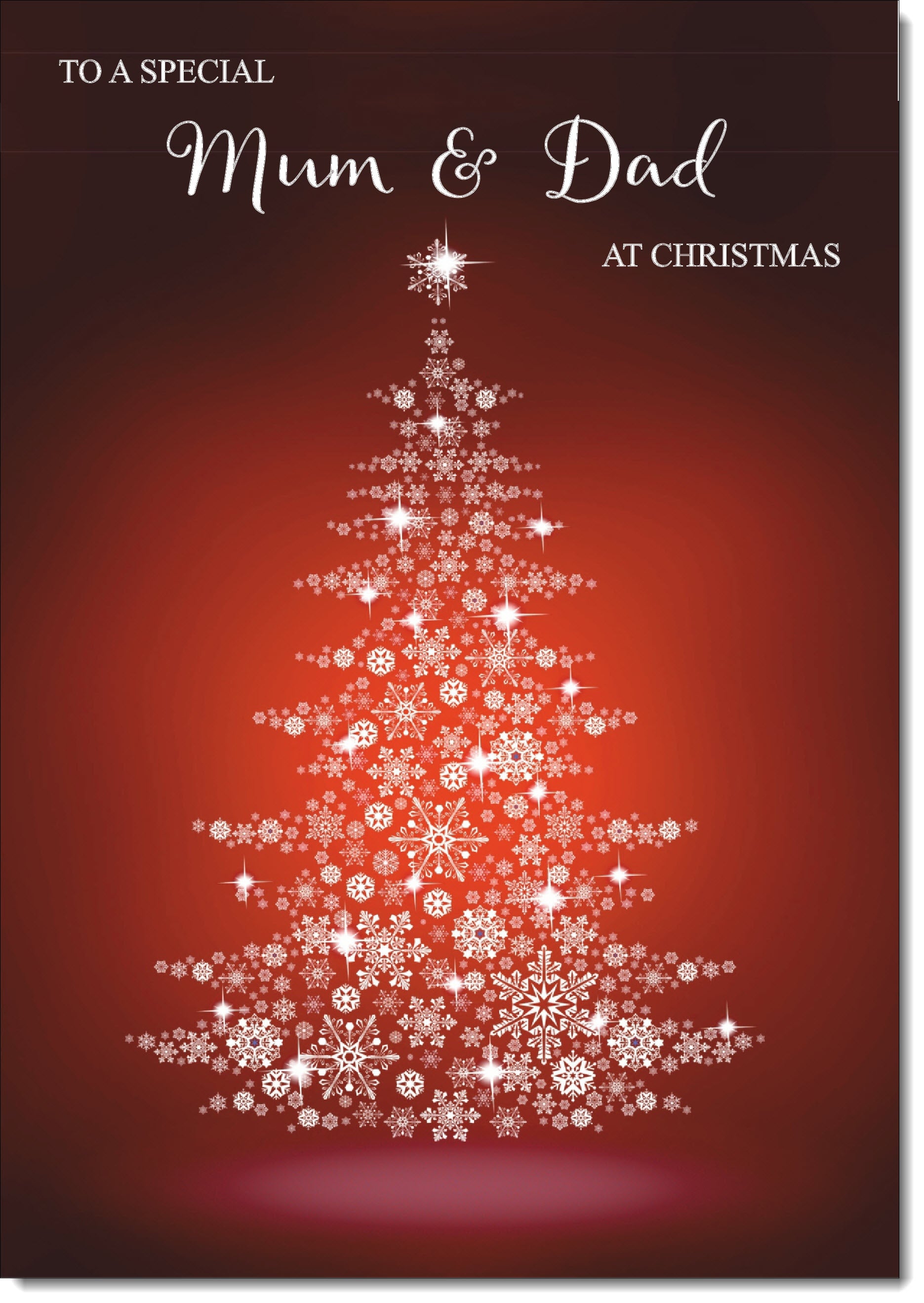 Mum & Dad Christmas Card Red Snowflake Christmas Tree