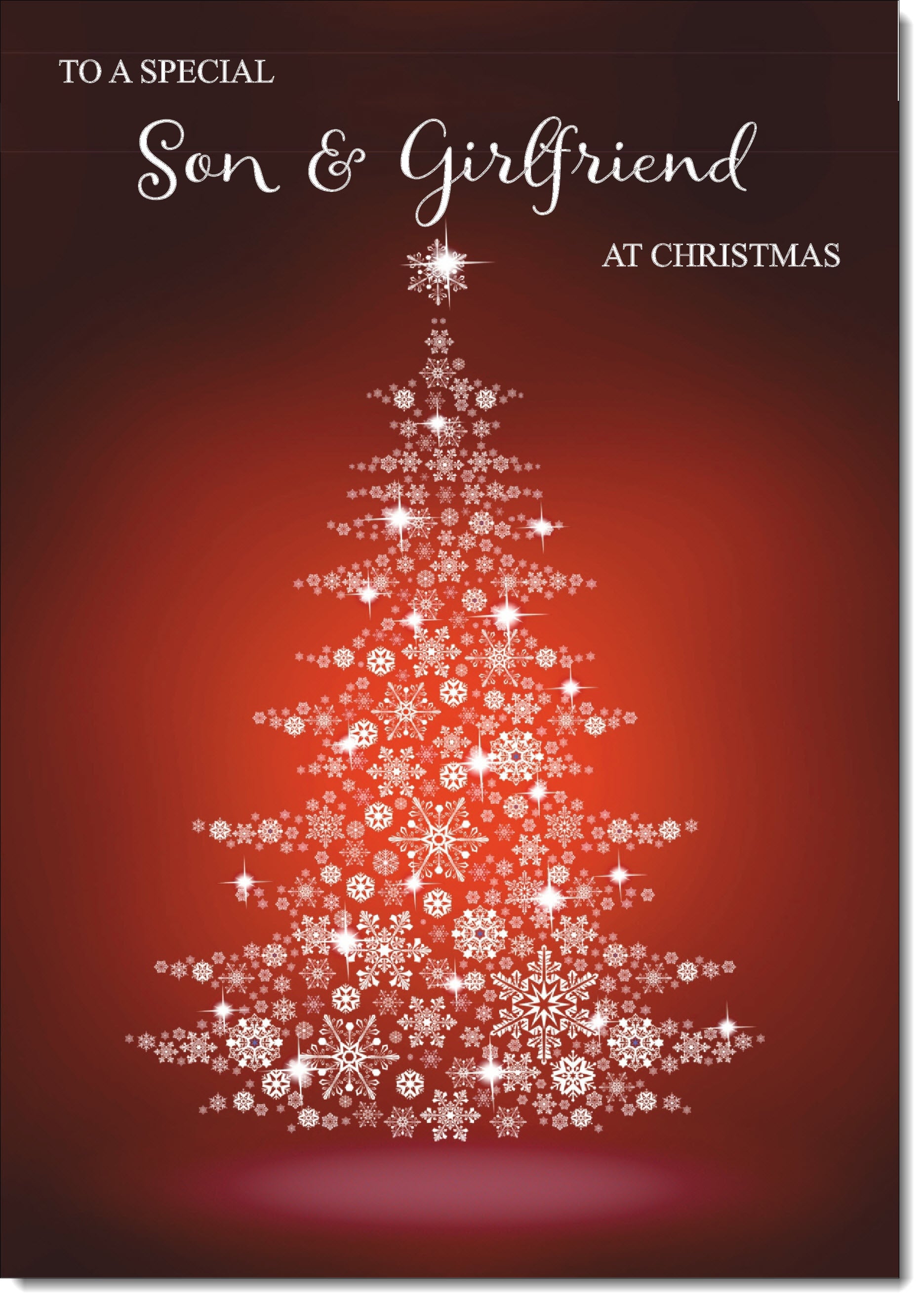 Son & Girlfriend Christmas Card Red Snowflake Christmas Tree