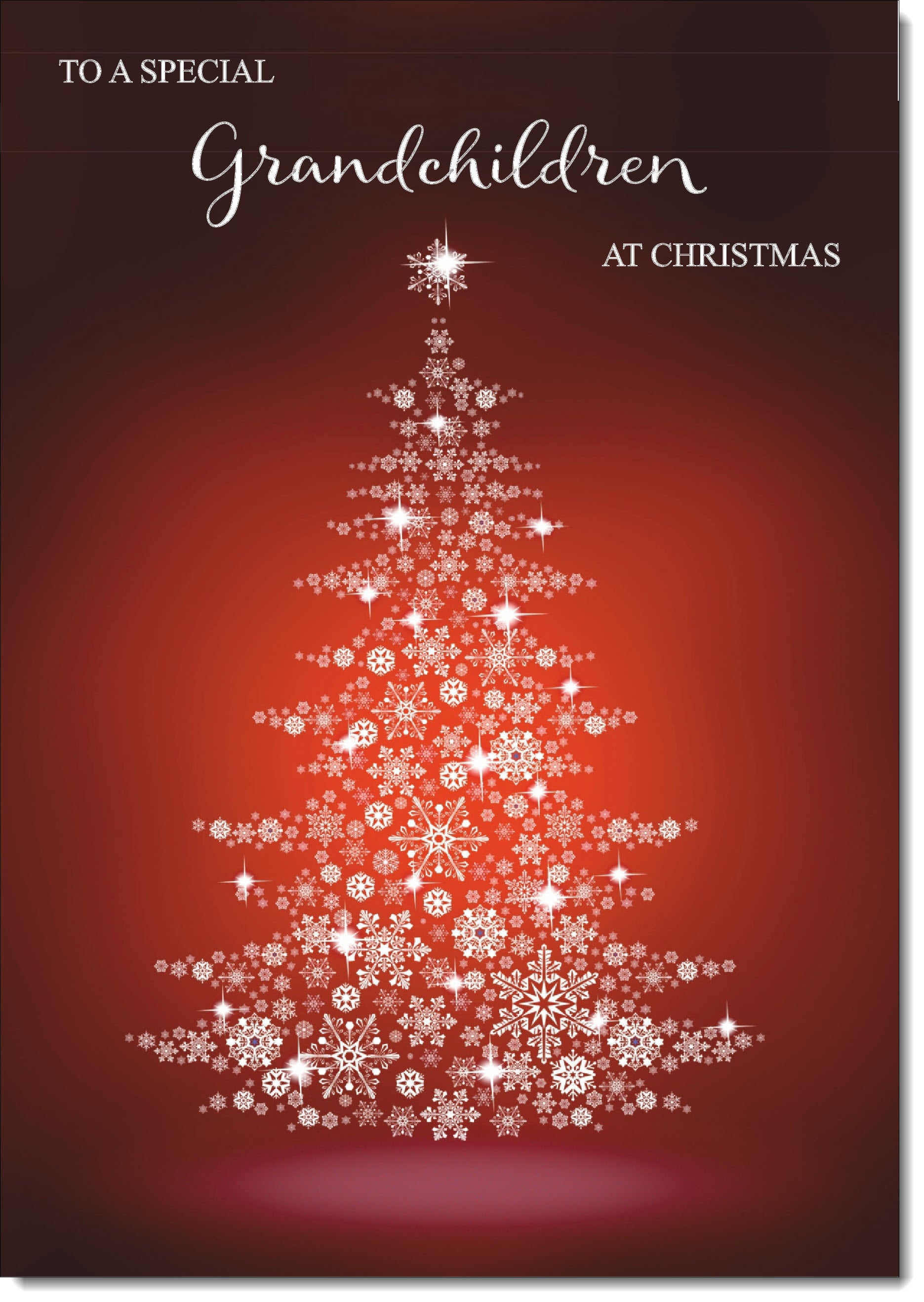 Grandchildren Christmas Card Red Snowflake Christmas Tree