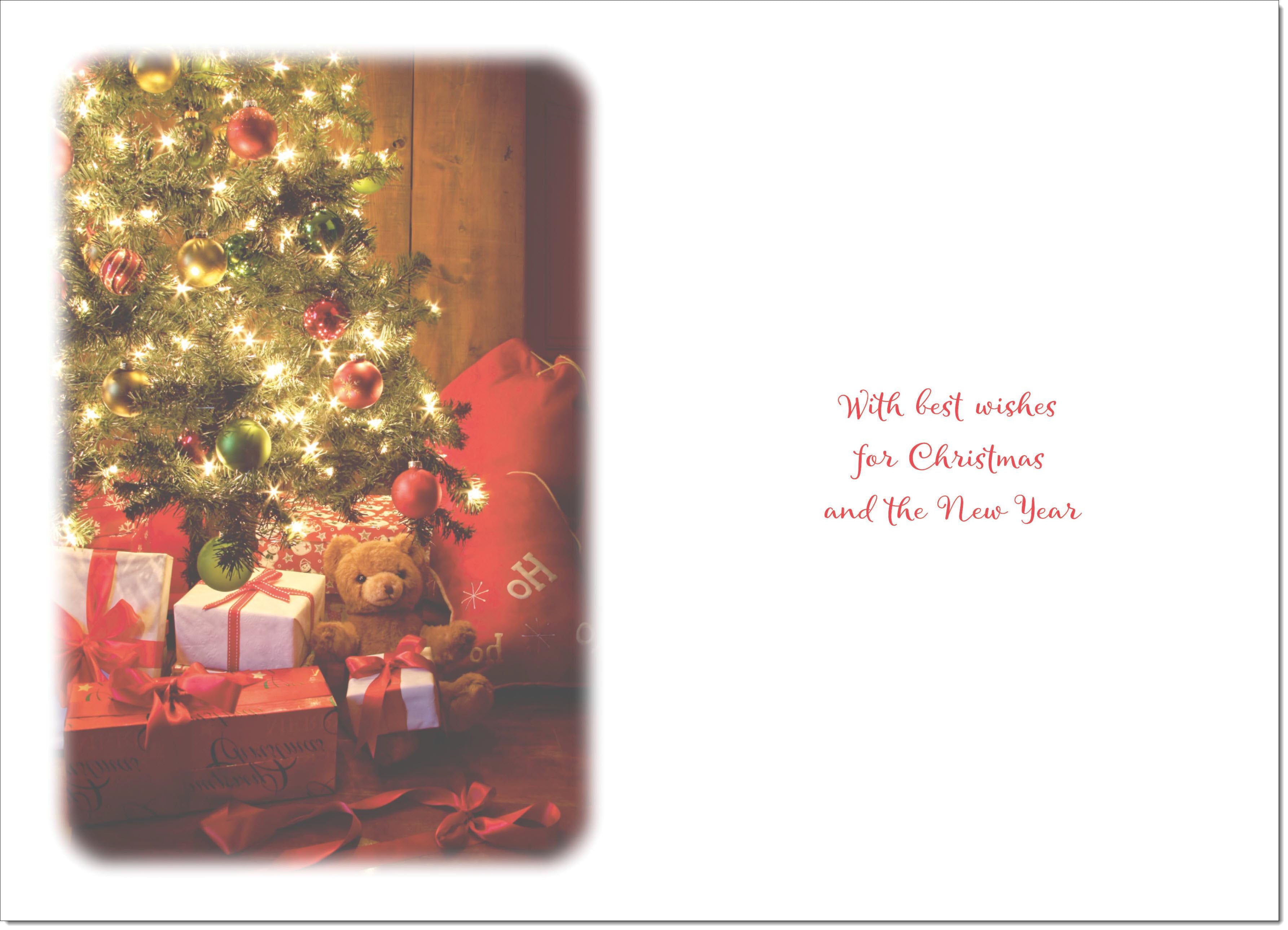 Across The Miles Christmas Card Teddy by Christmas Tree