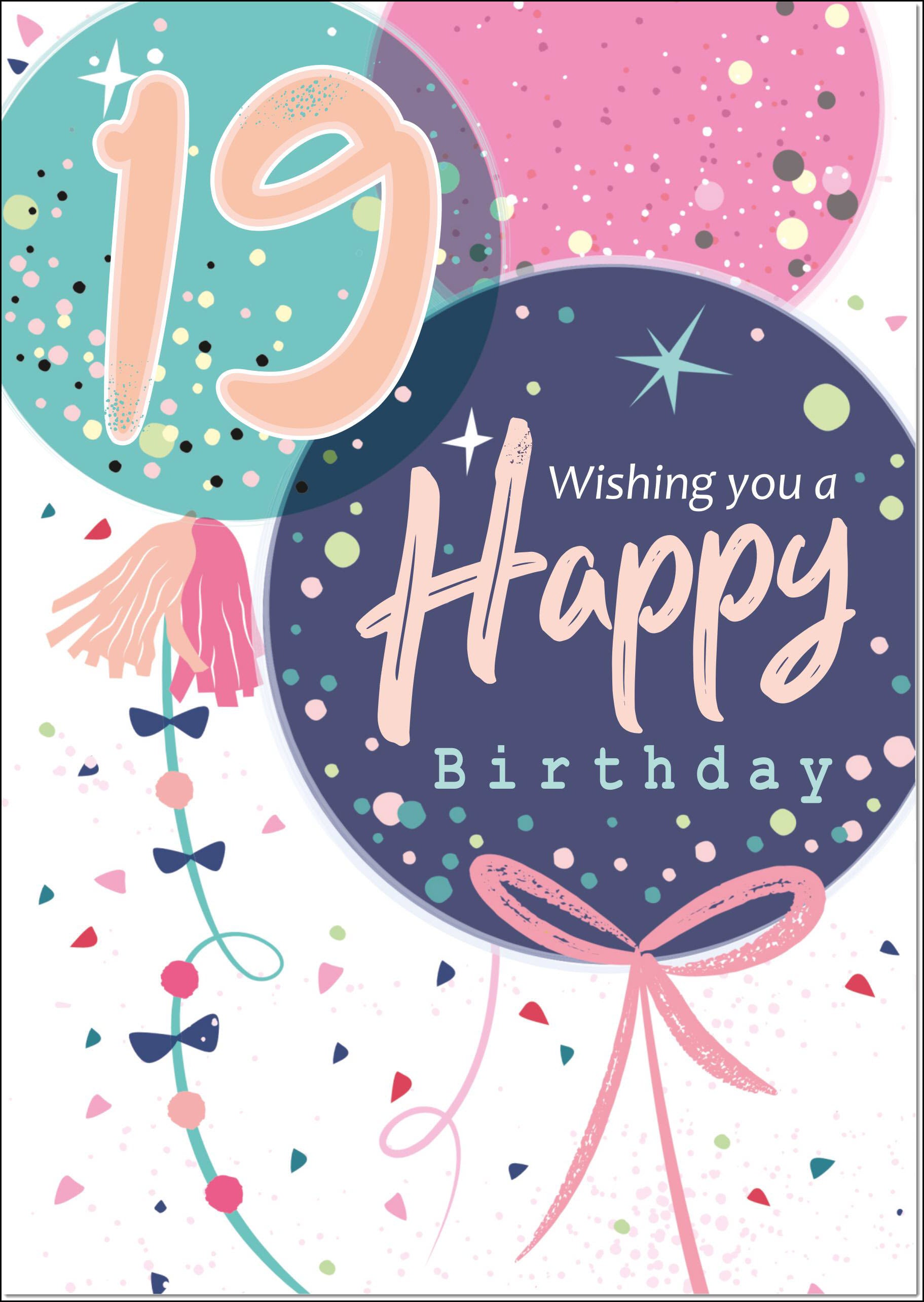 19th Birthday Card Age 19 for Her Confetti Happy Birthday Balloons