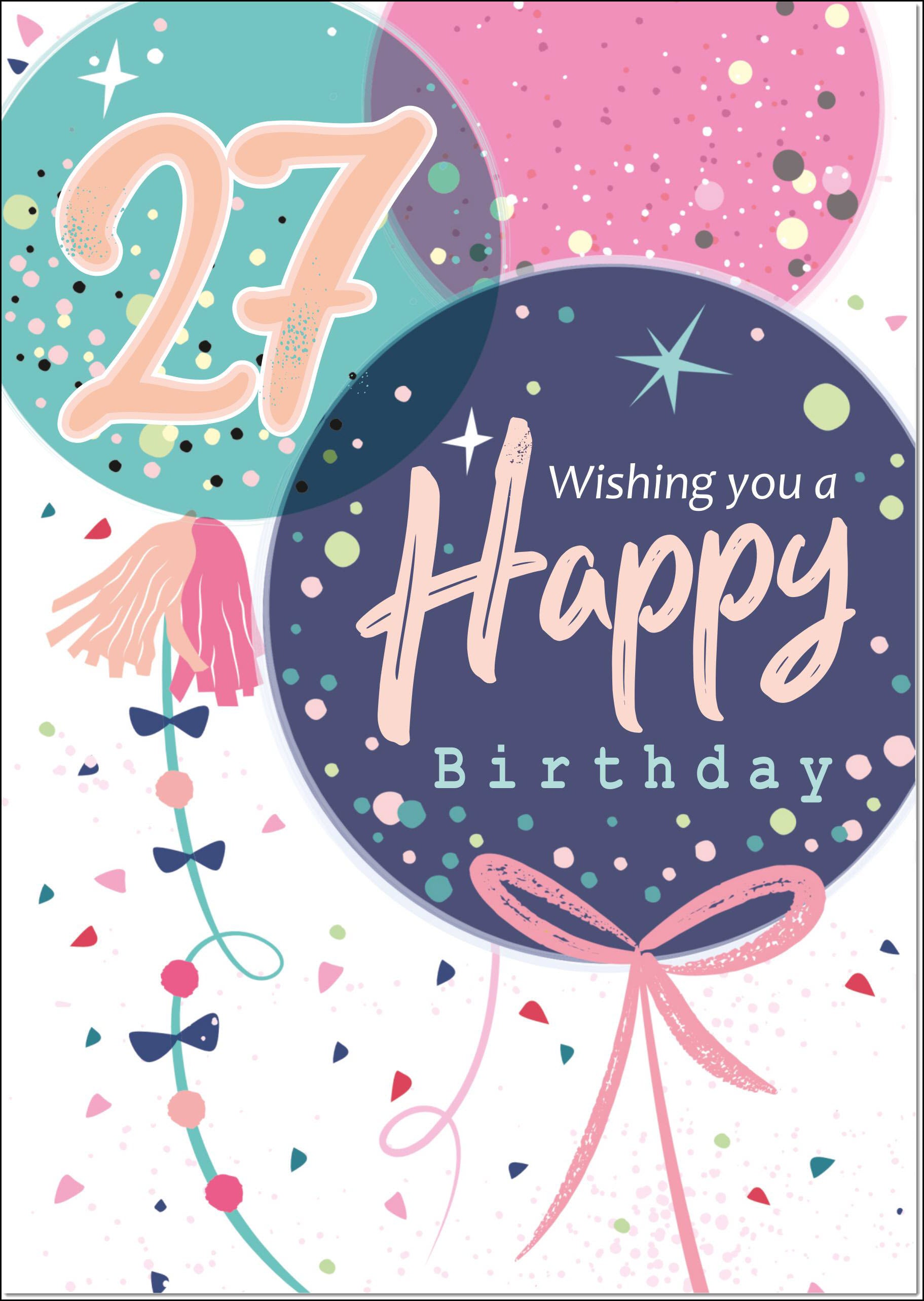 27th Birthday Card Age 27 for Her Confetti Happy Birthday Balloons
