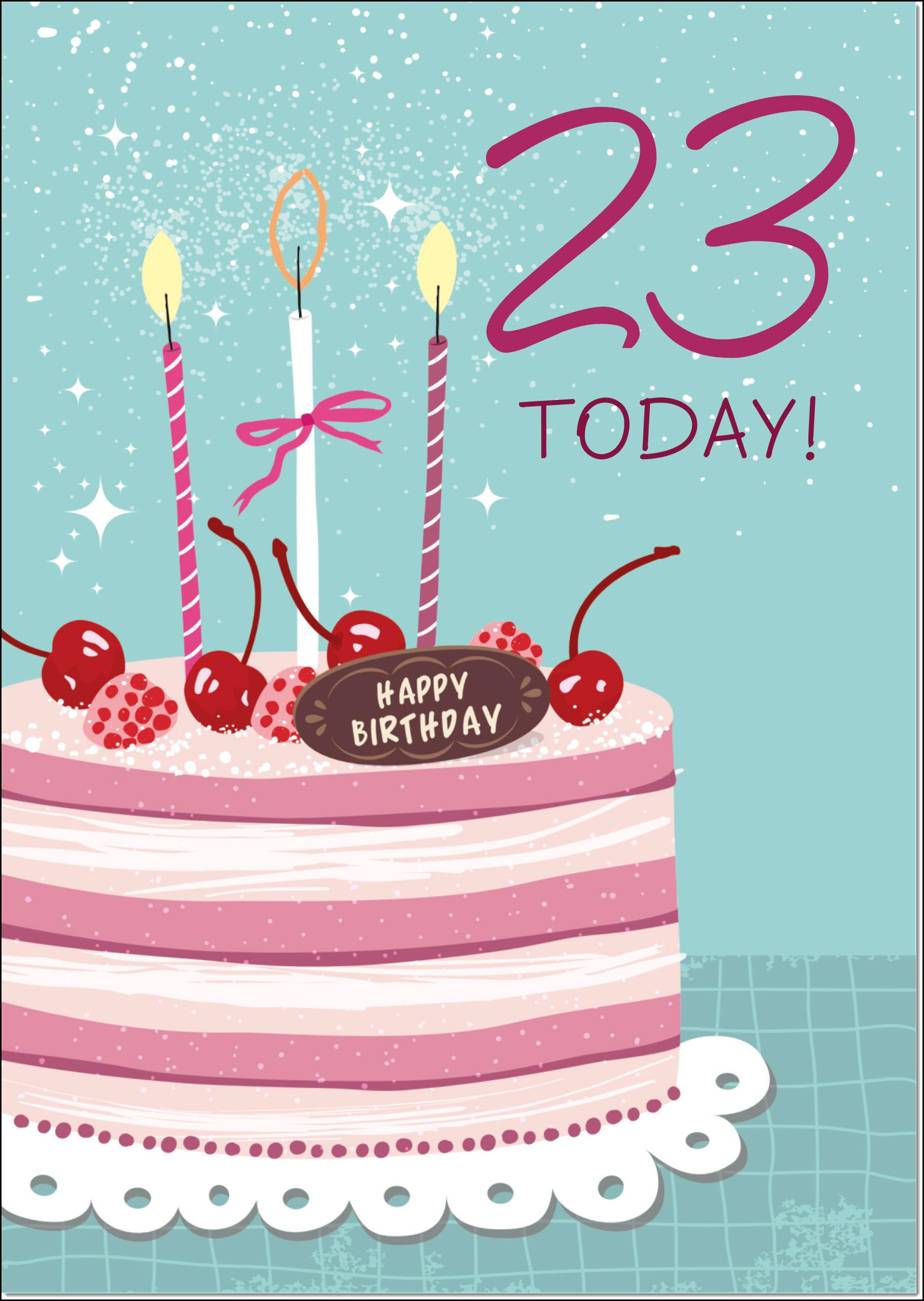 23rd Birthday Card Age 23 for Her Cherry Birthday Cake and Candles
