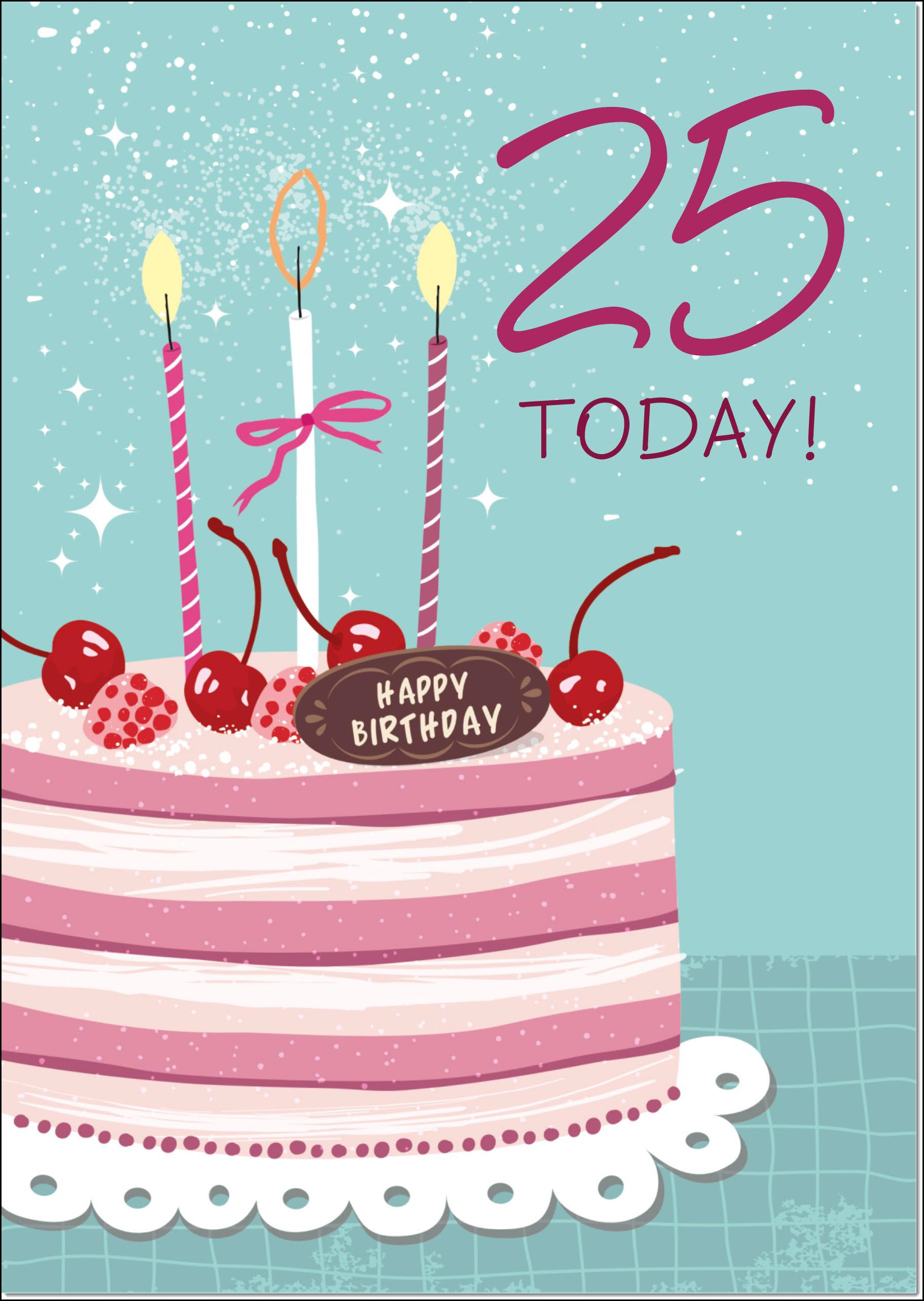 25th Birthday Card Age 25 for Her Cherry Birthday Cake and Candles