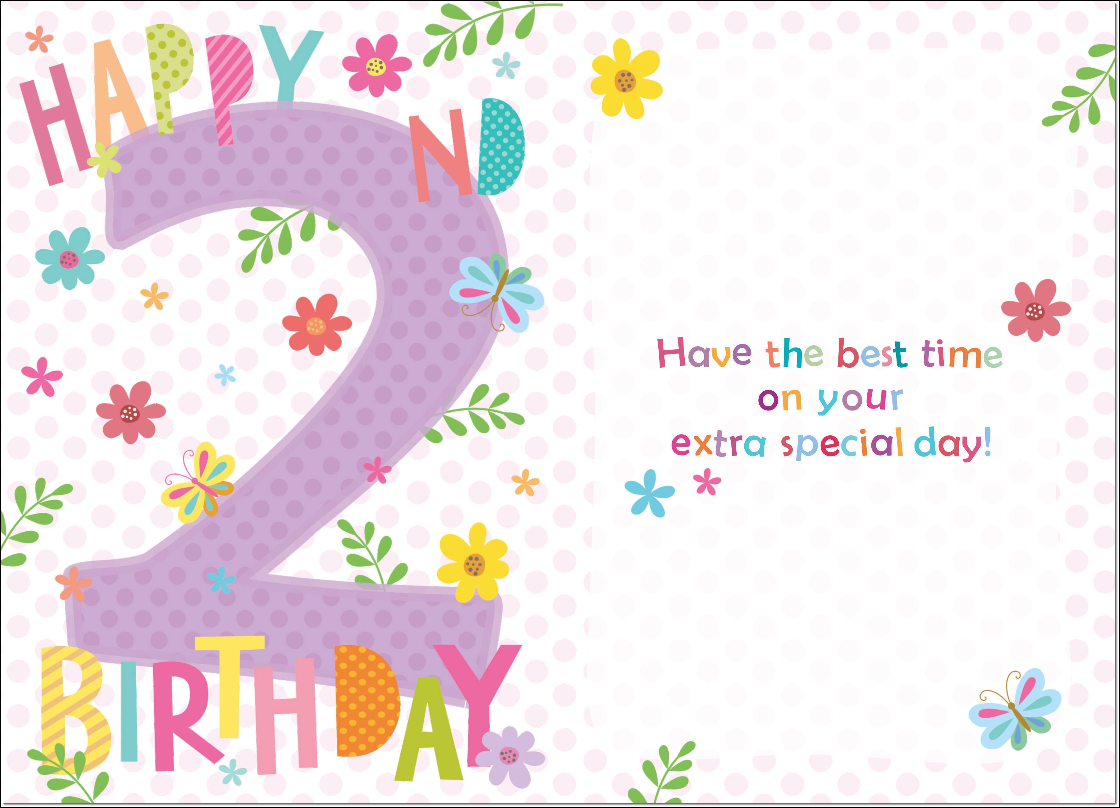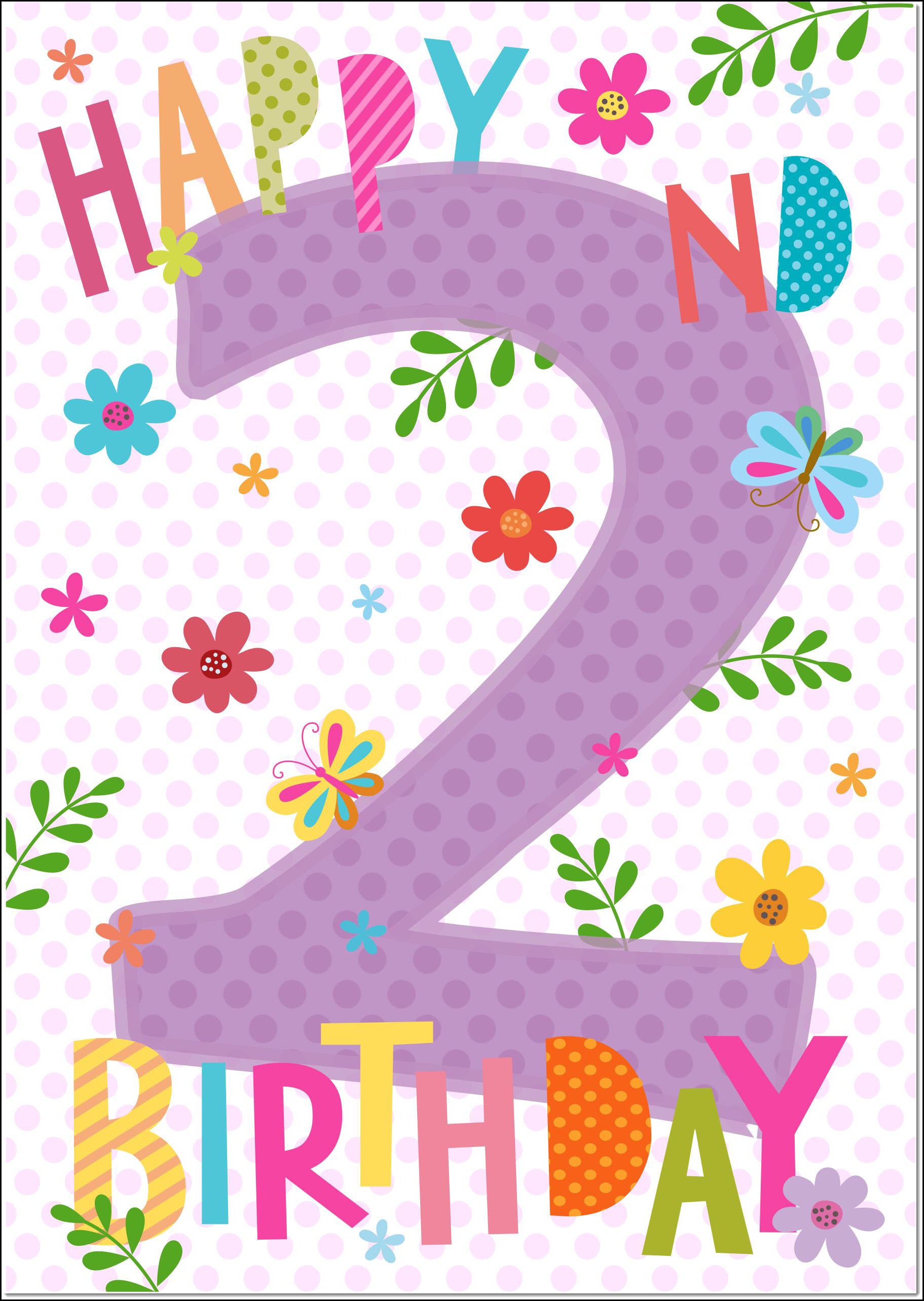 2nd Birthday Card Age 2 for Girl Floral Numbers