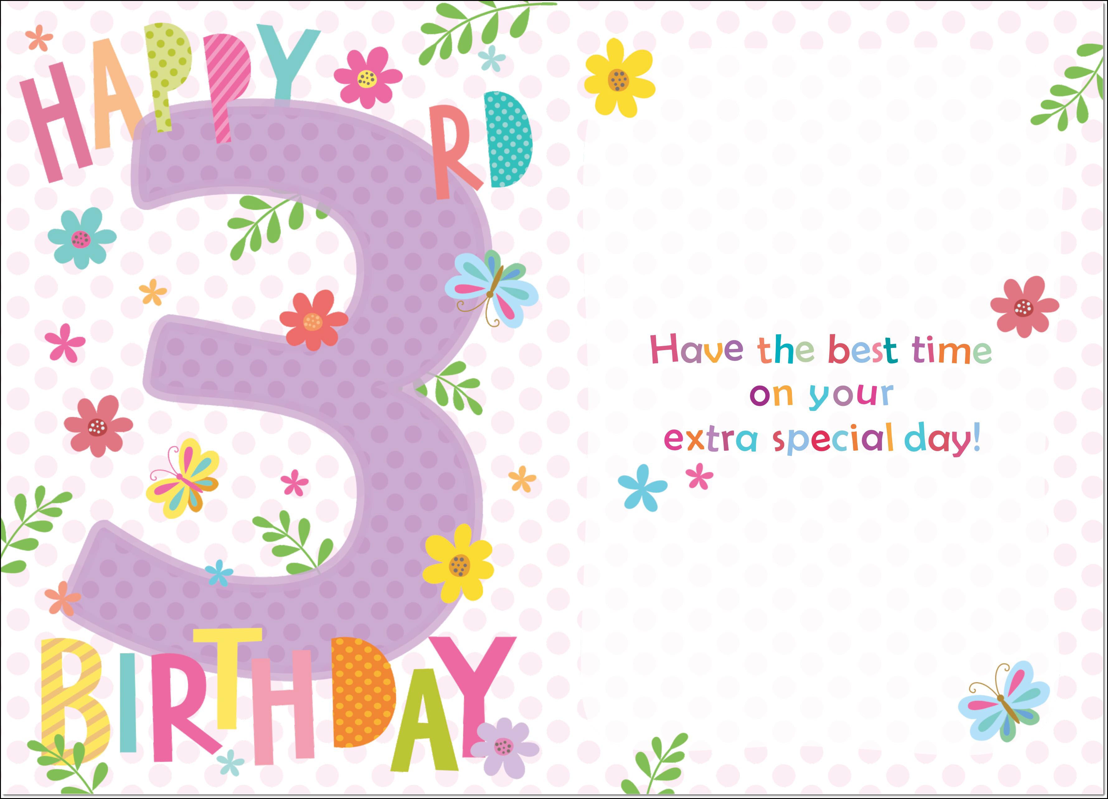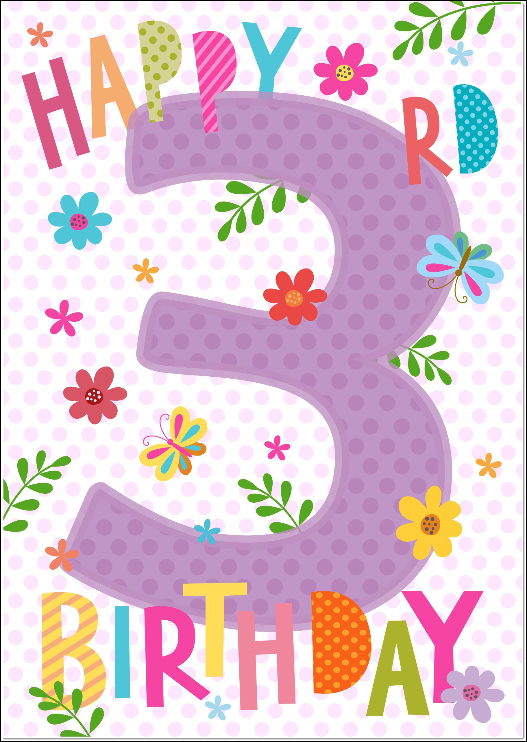 3rd Birthday Card Age 3 for Girl Floral Numbers