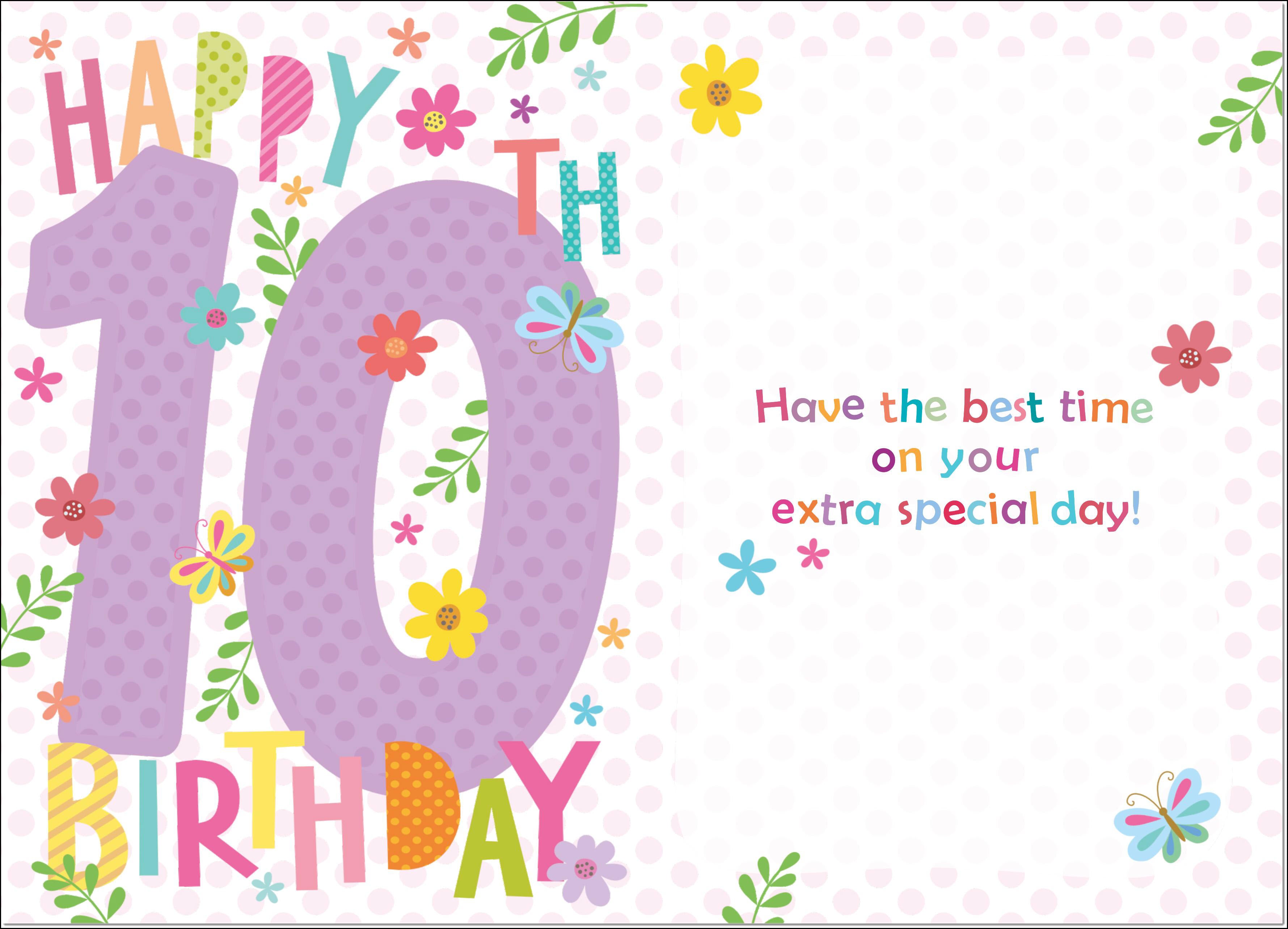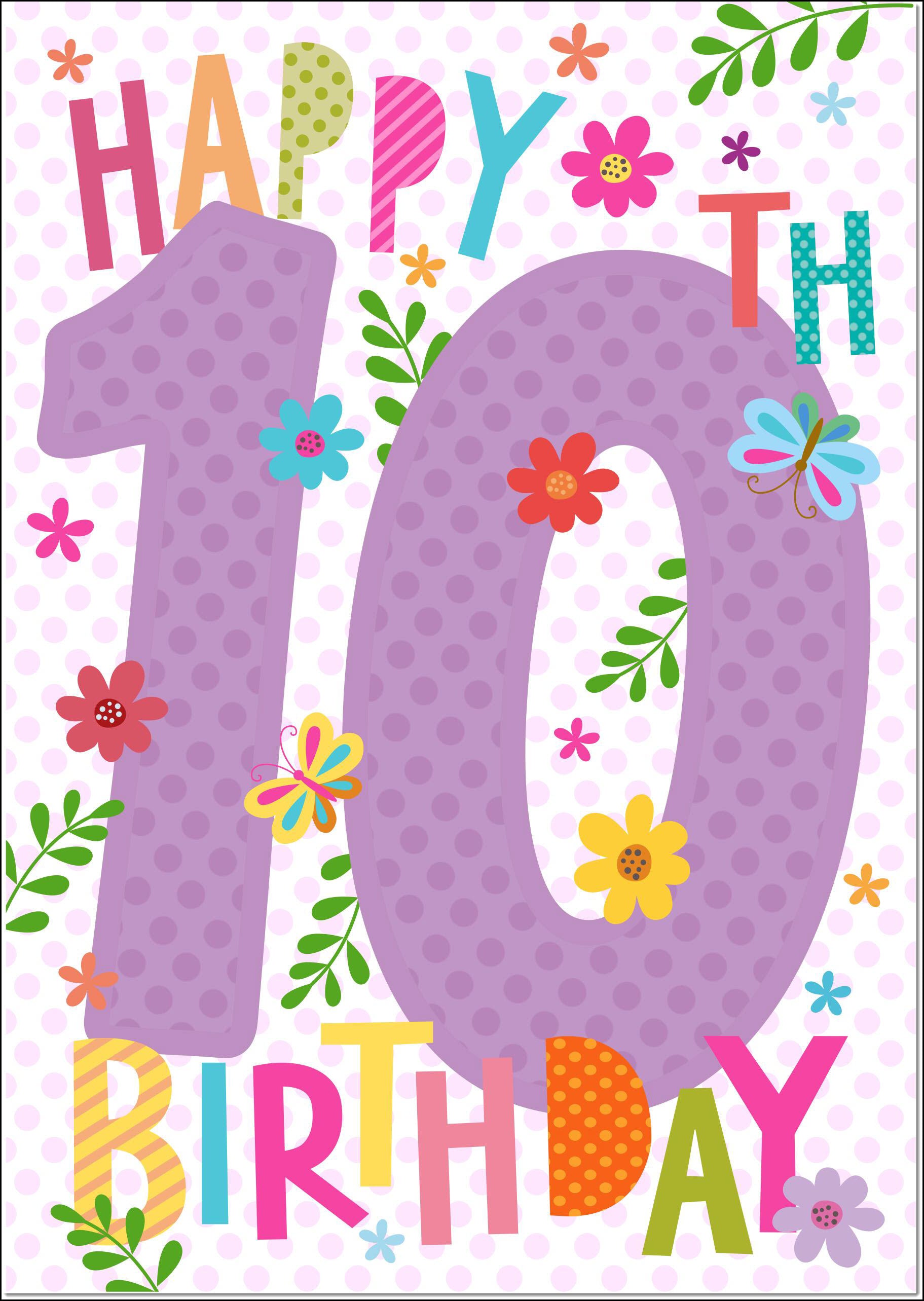 10th Birthday Card Age 10 for Girl Floral Numbers