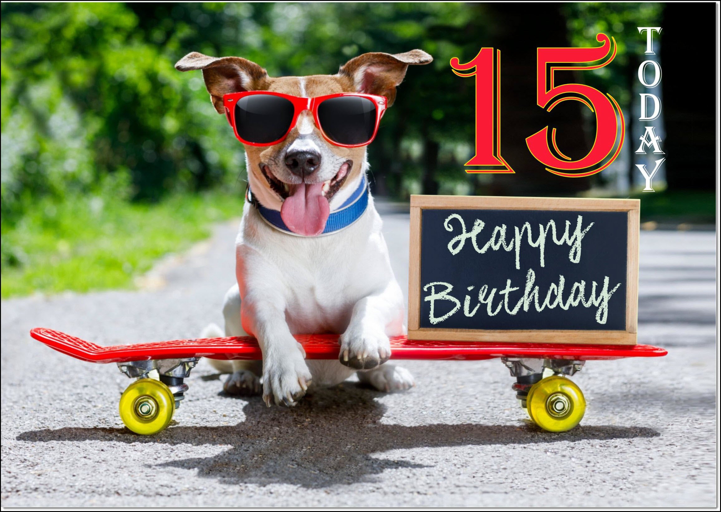 15th Birthday Card Age 15 for Boy Cool Skateboarding Jack Russell