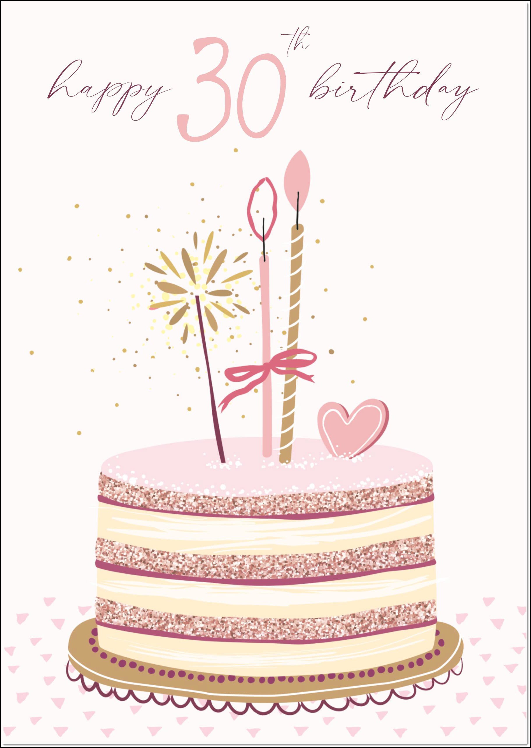 30th Birthday Card Age 30 for Her Pastel Pink Birthday Cake