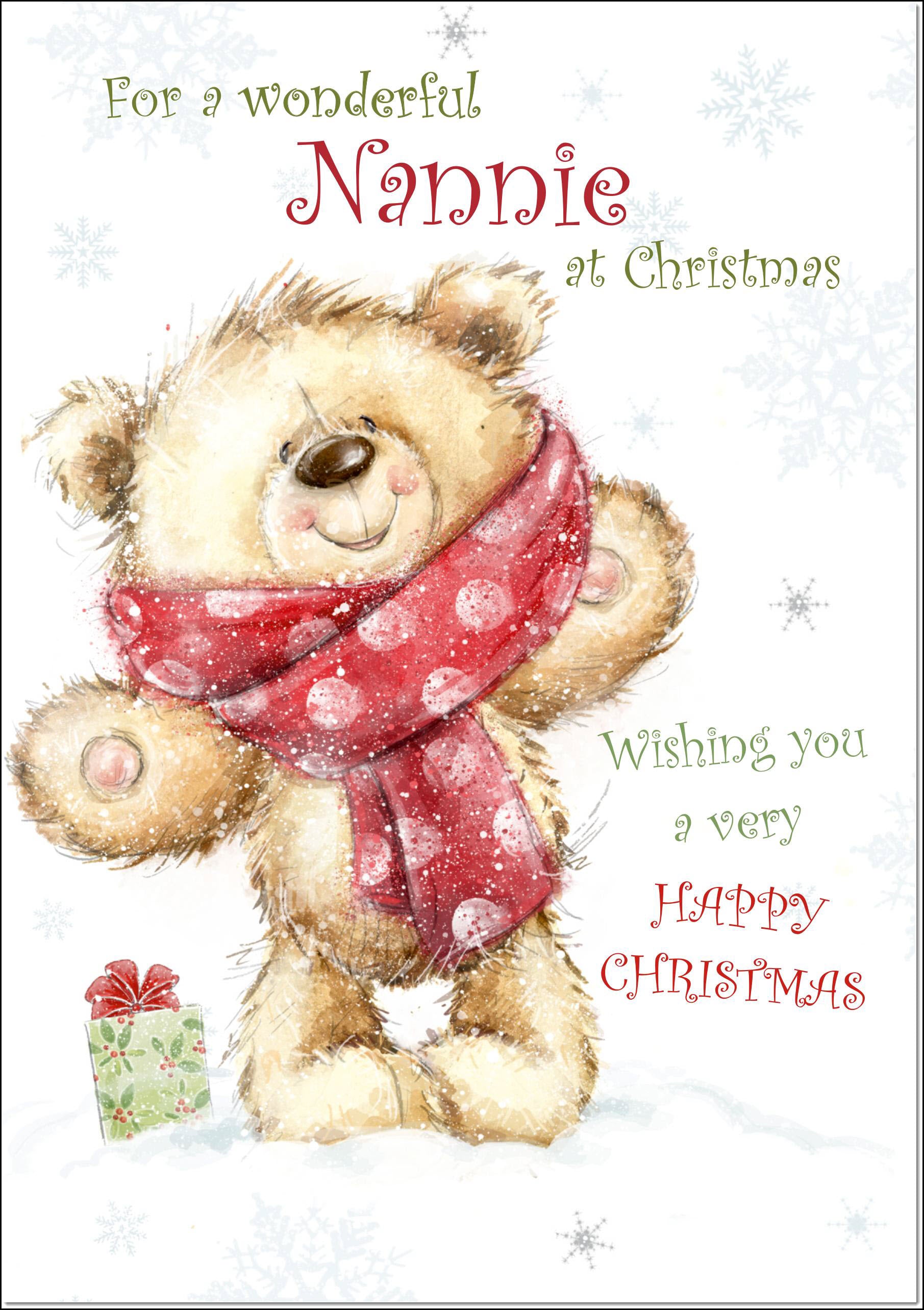 Nannie Christmas Card Teddy Bear With Red Scarf