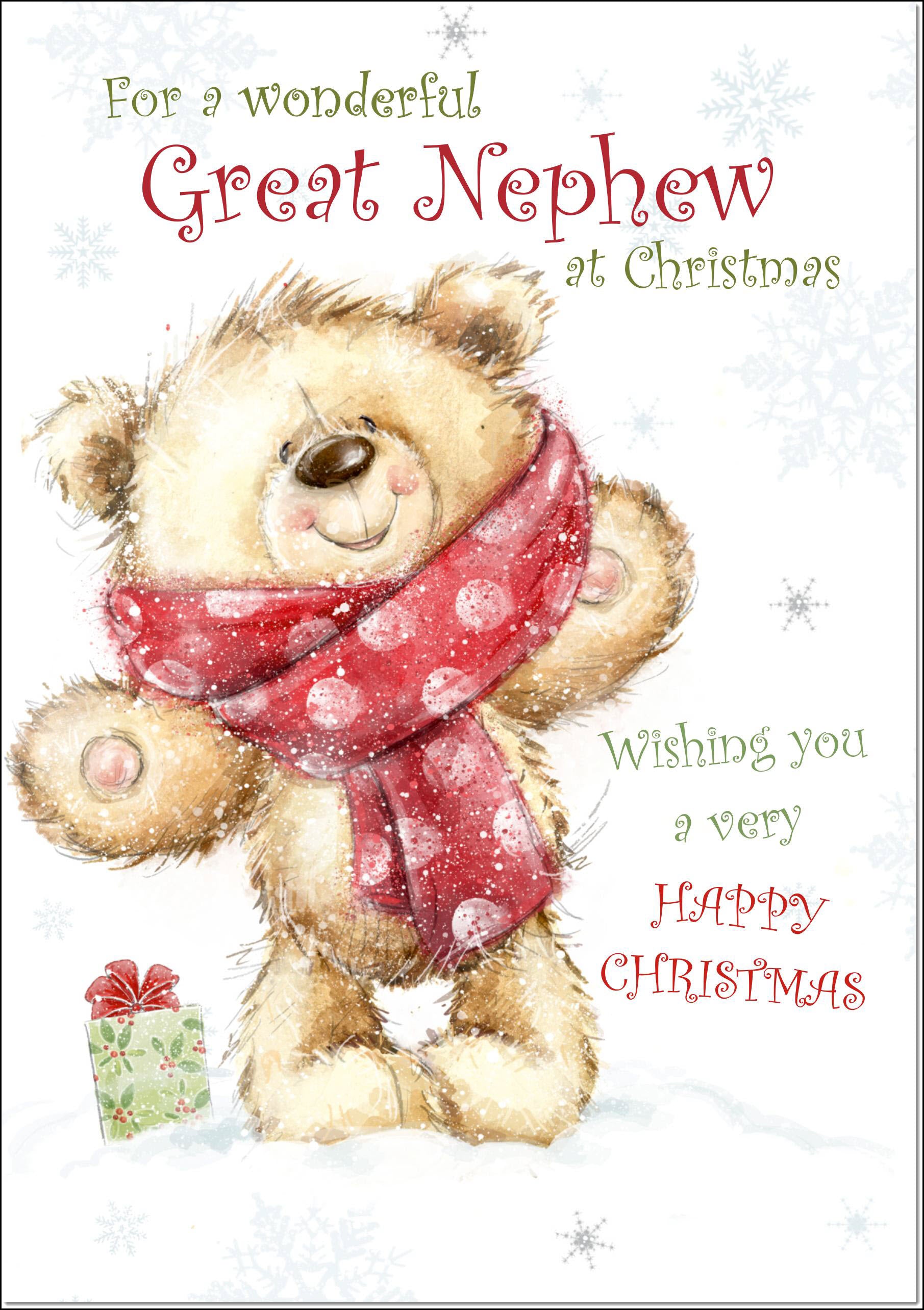 Great Nephew Christmas Card Teddy Bear With Red Scarf
