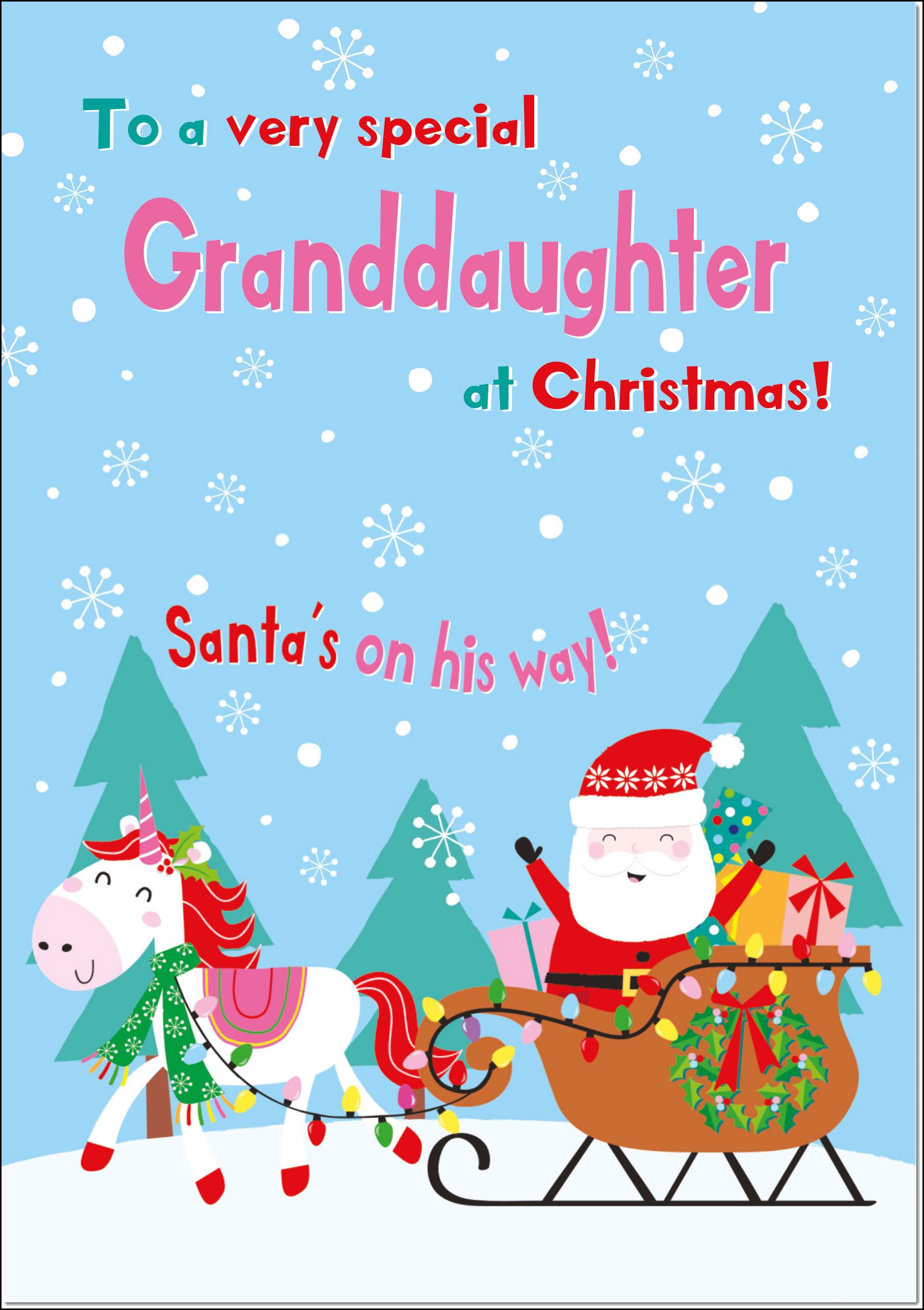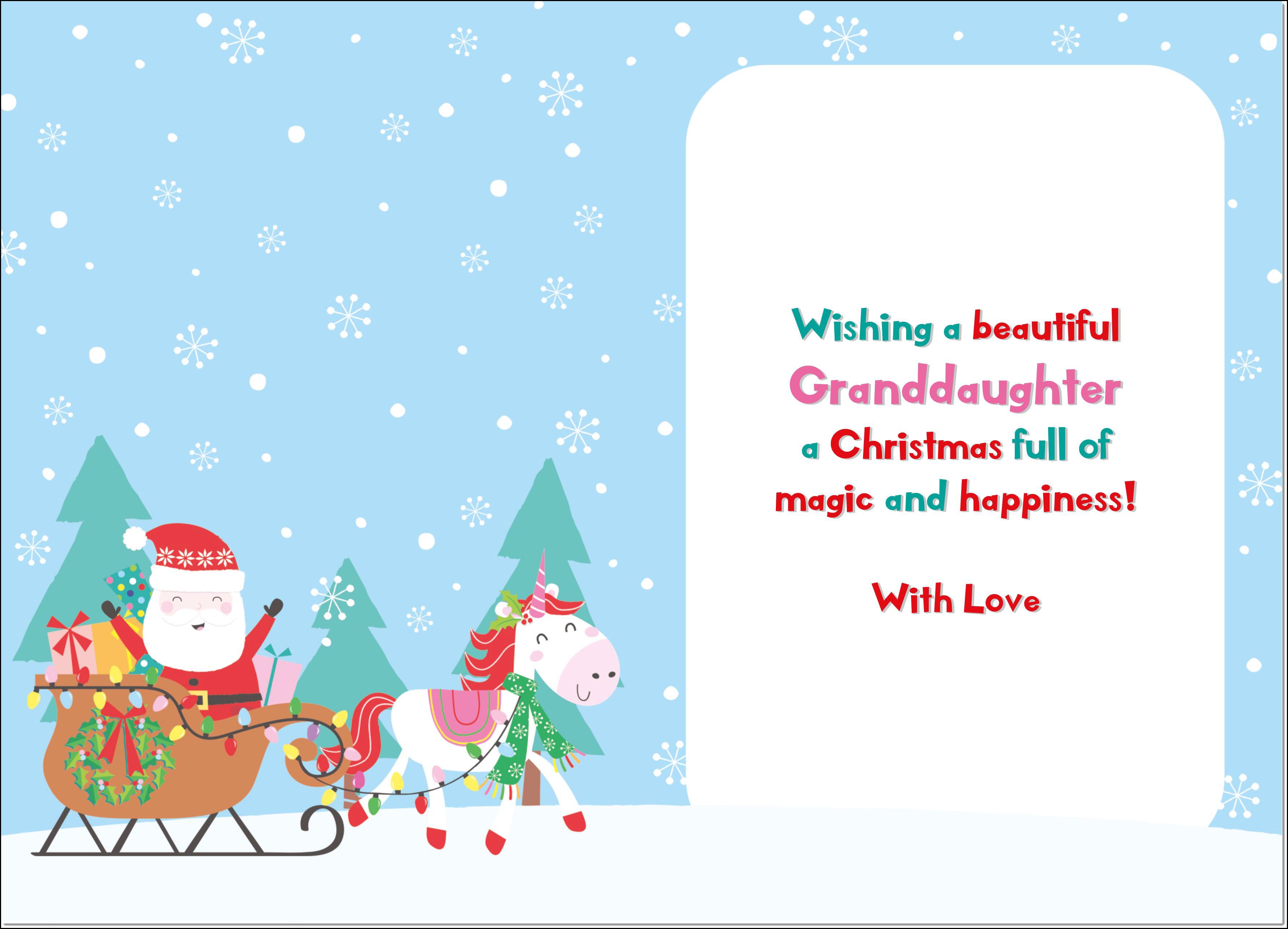 Granddaughter Christmas Card Magic Santa's Sleigh With Unicorn