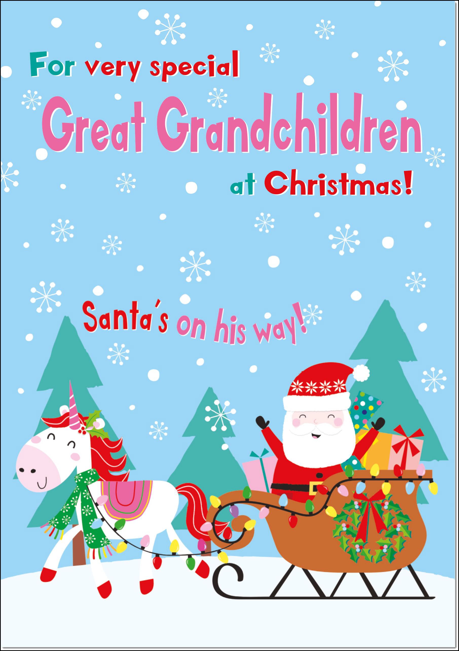 Great Grandchildren Christmas Card Magic Santa's Sleigh With Unicorn