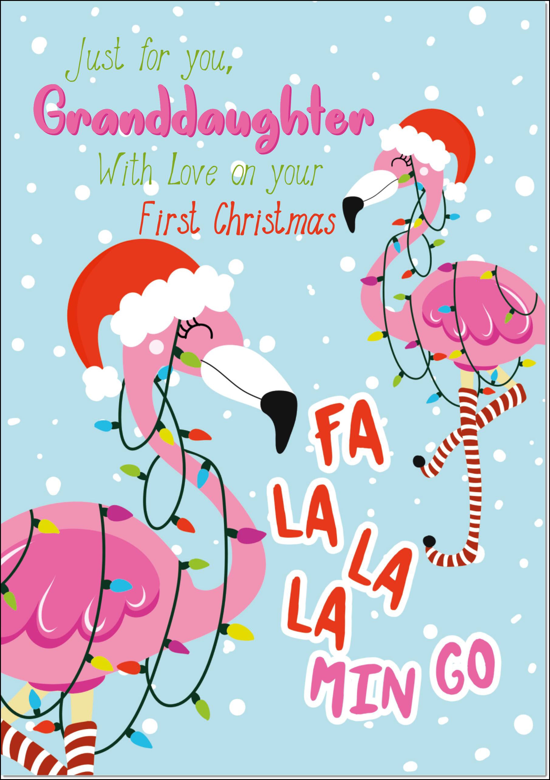 Granddaughters 1st Christmas Card Flamingo Christmas Tree Lights