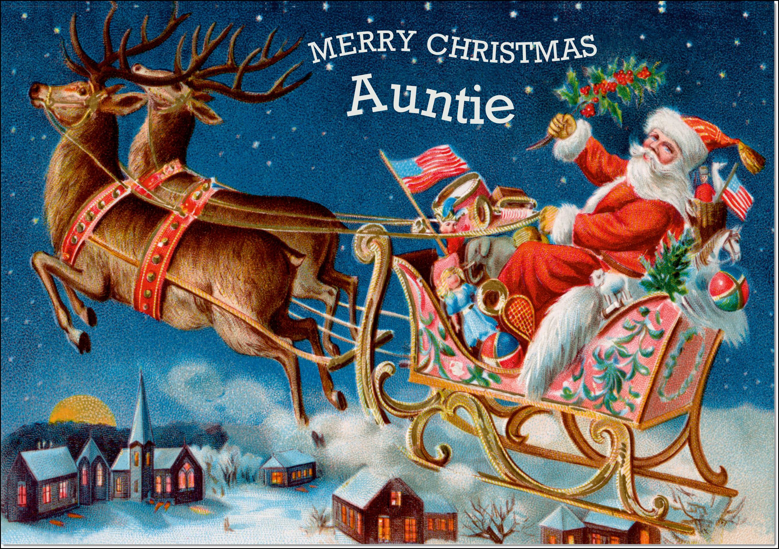 Auntie Christmas Card Santa's Sleigh Victorian Style