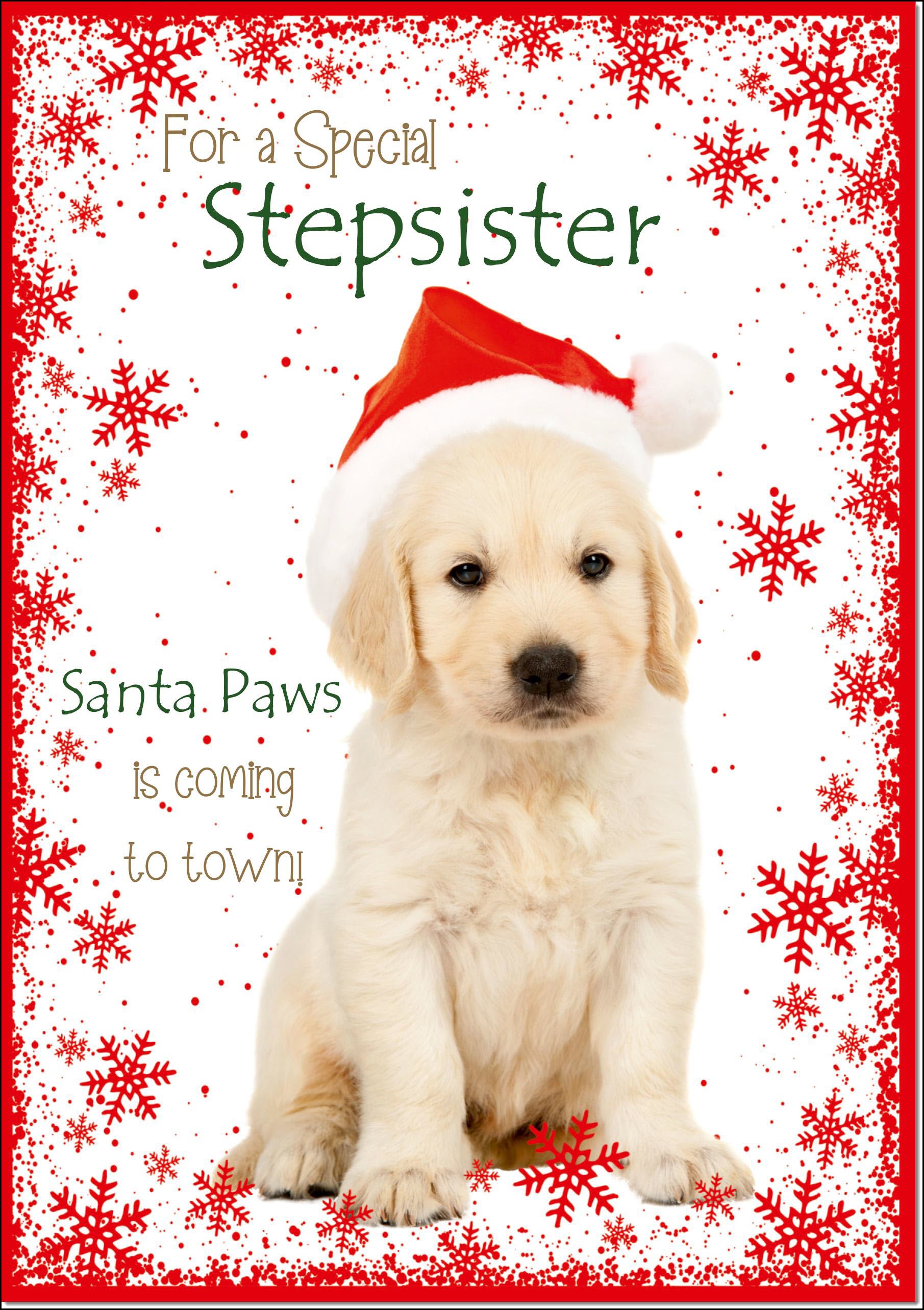 Stepsister Christmas Card Cute Santa Paws Puppy Dog Pet
