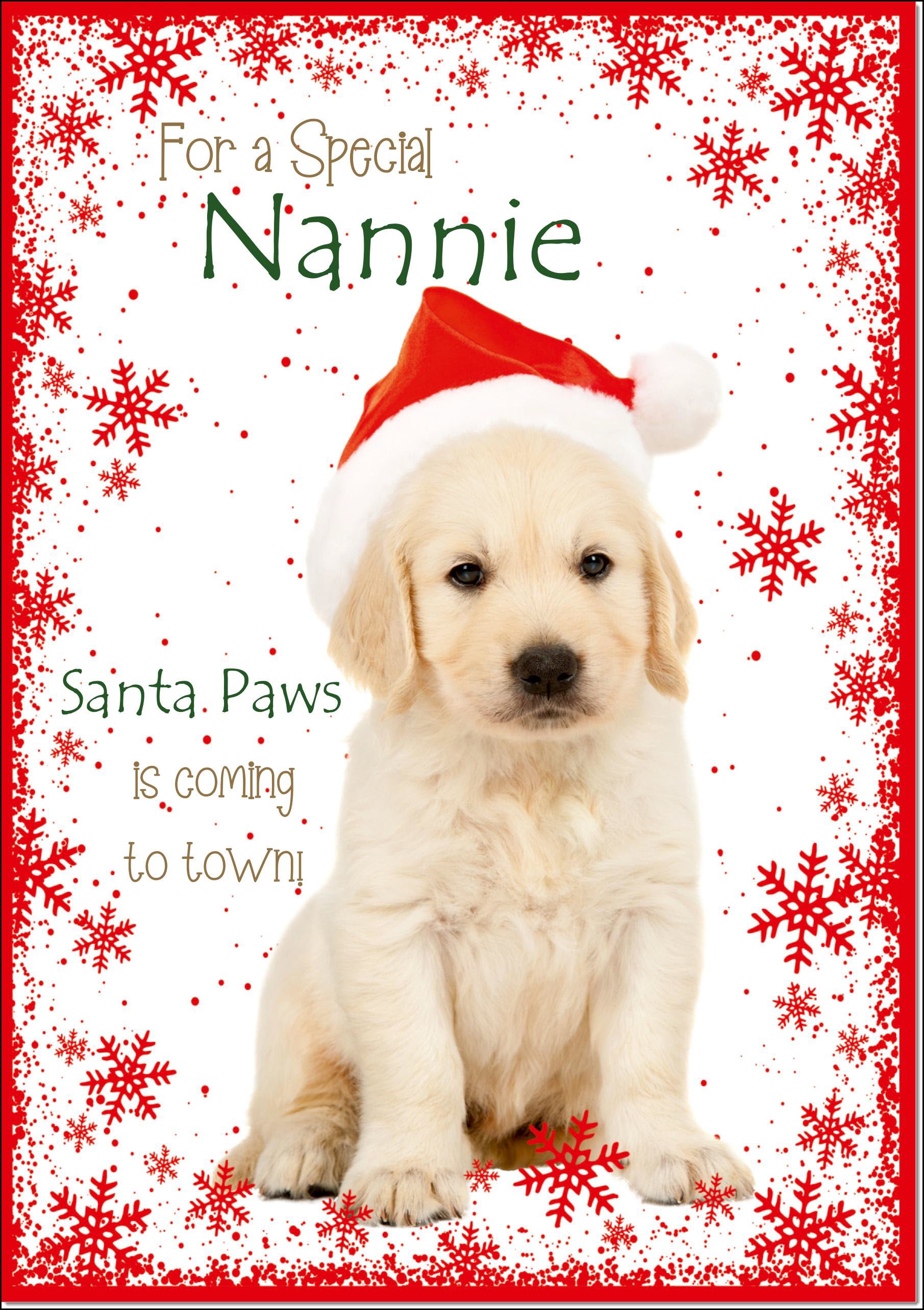 Nannie Christmas Card Cute Santa Paws Puppy Dog Pet