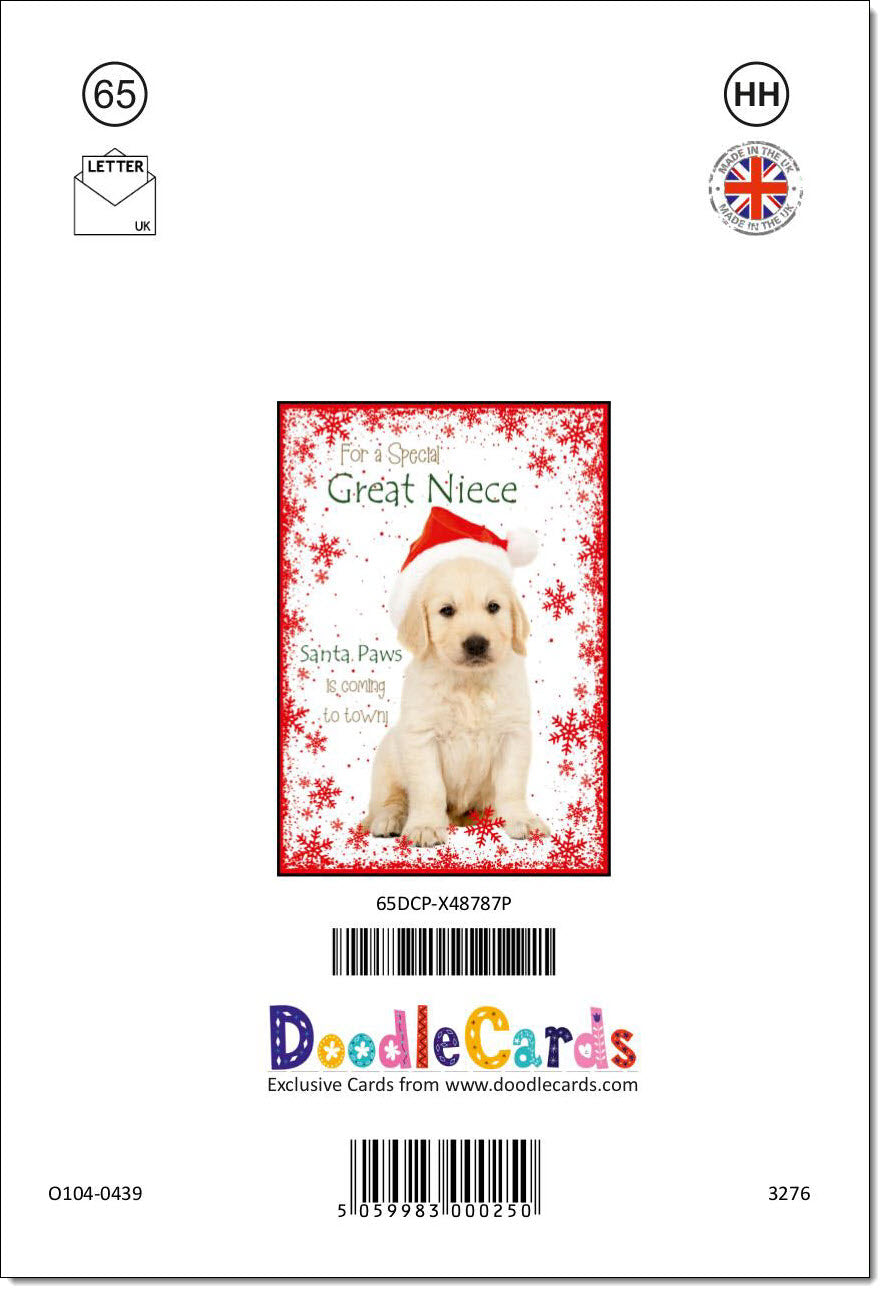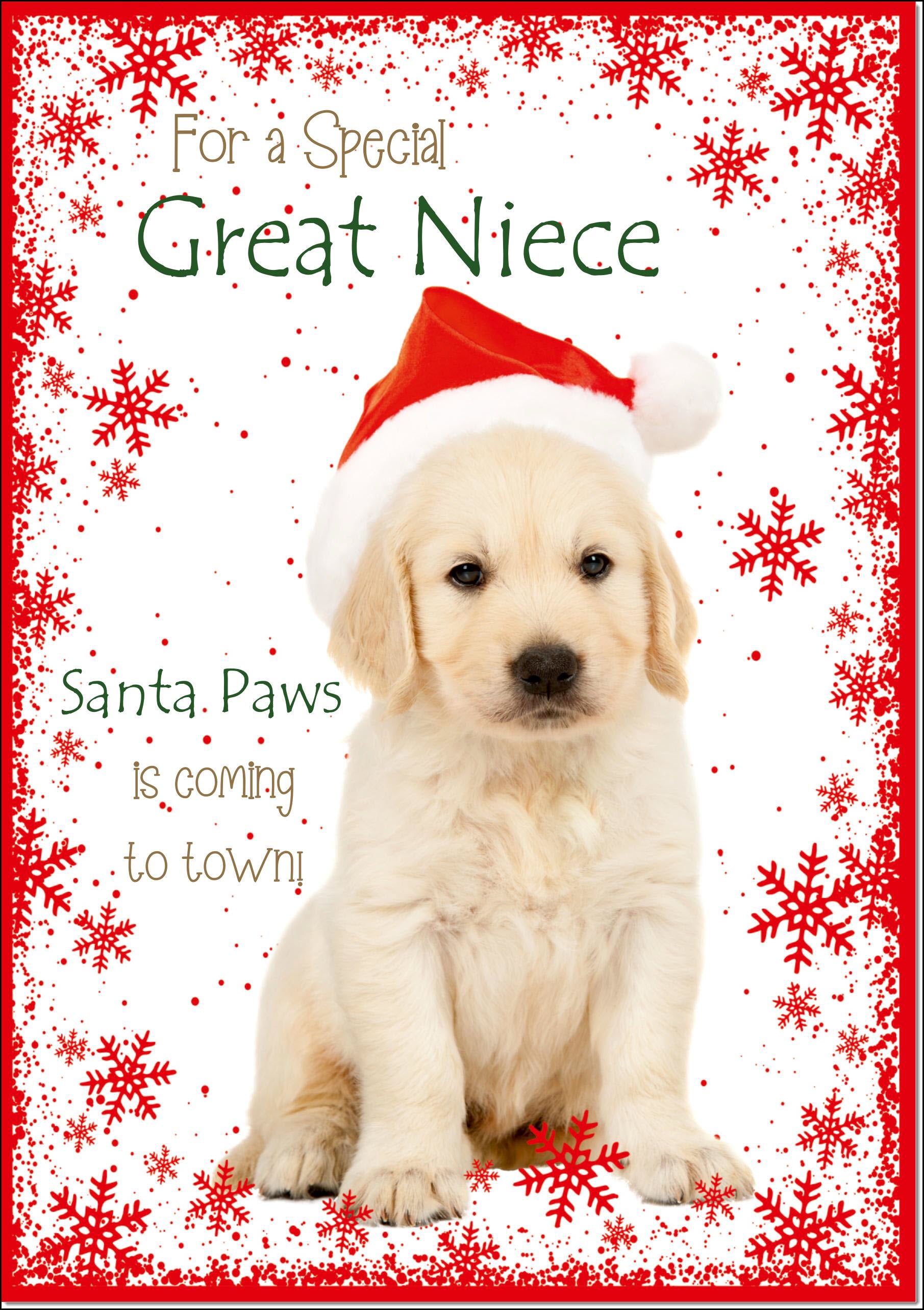 Great Niece Christmas Card Cute Santa Paws Puppy Dog Pet