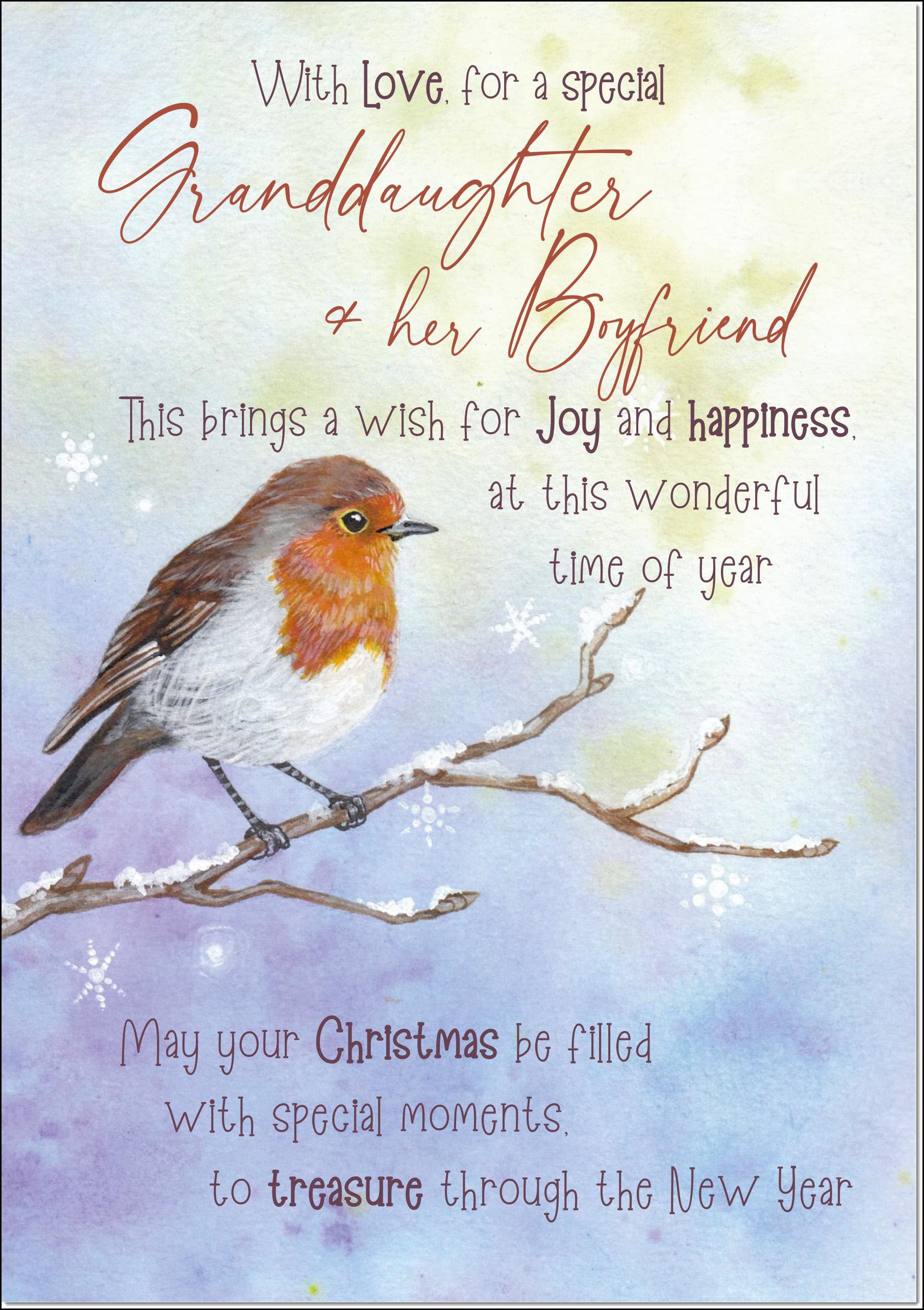 Granddaughter & Boyfriend Christmas Card Watercolour Robin In The Frost