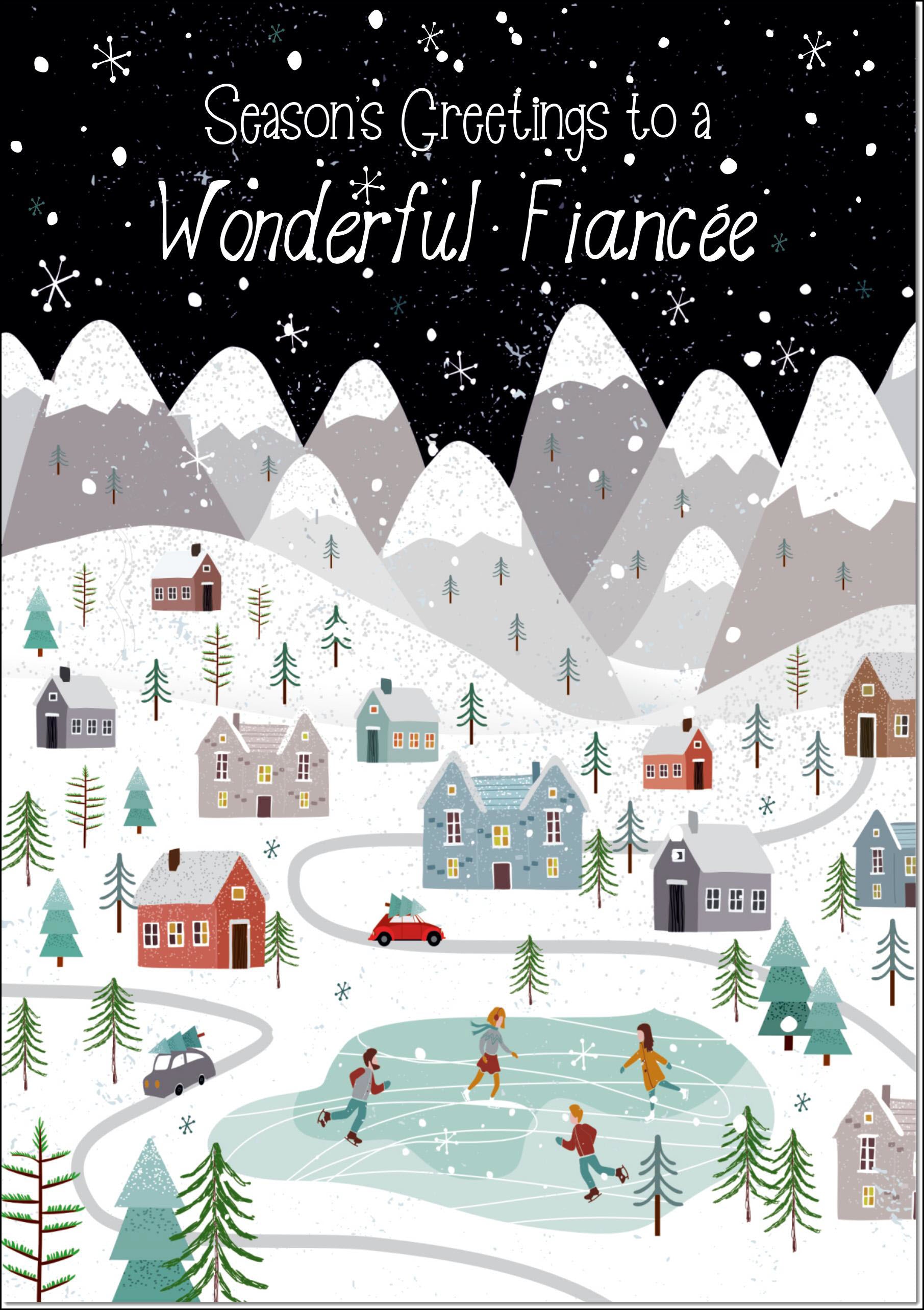 Fiancee Christmas Card Mountain Scene In Snowy Village