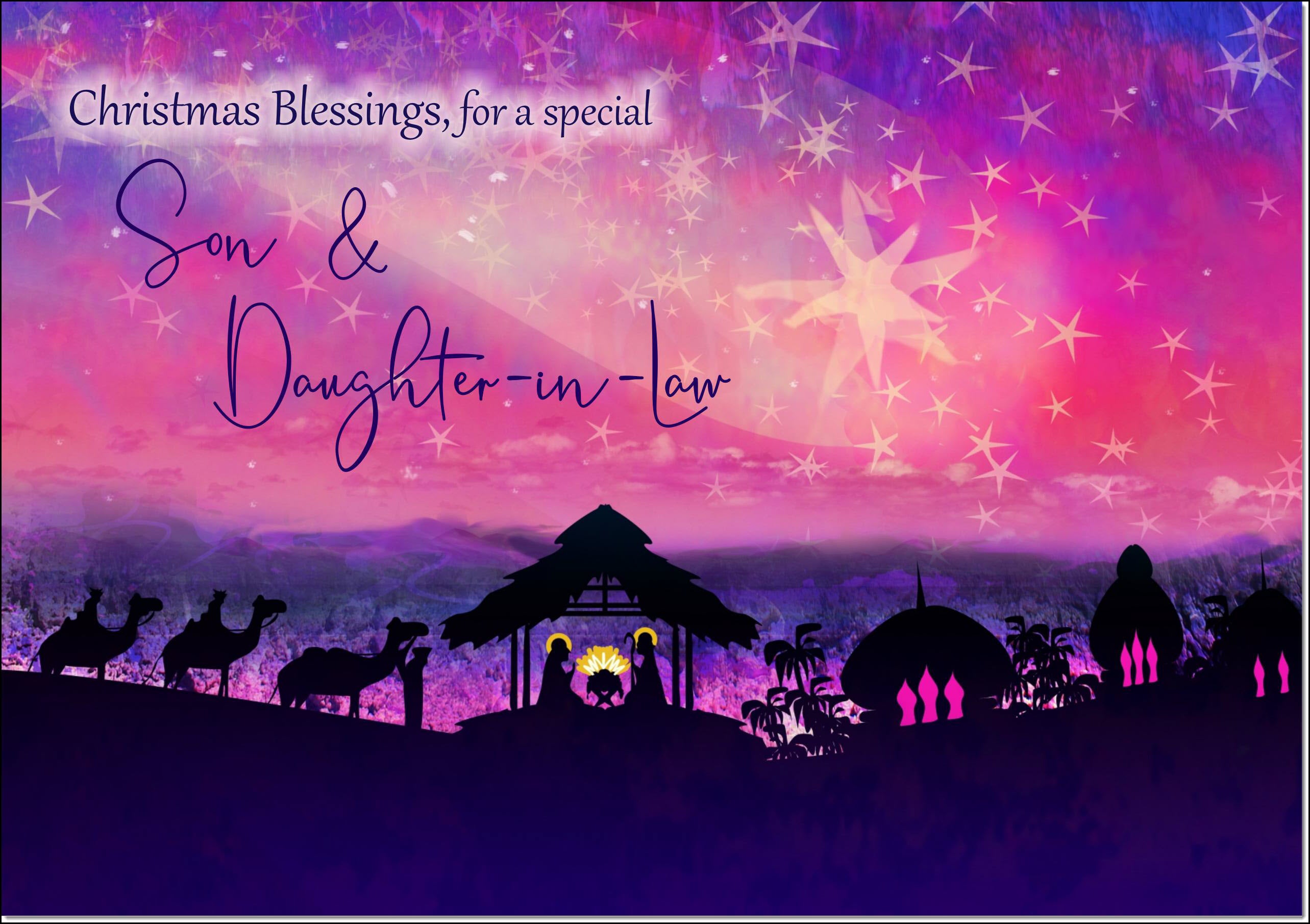 Son & Daughter-in-Law Christmas Card Nativity Scene Evening Watercolour