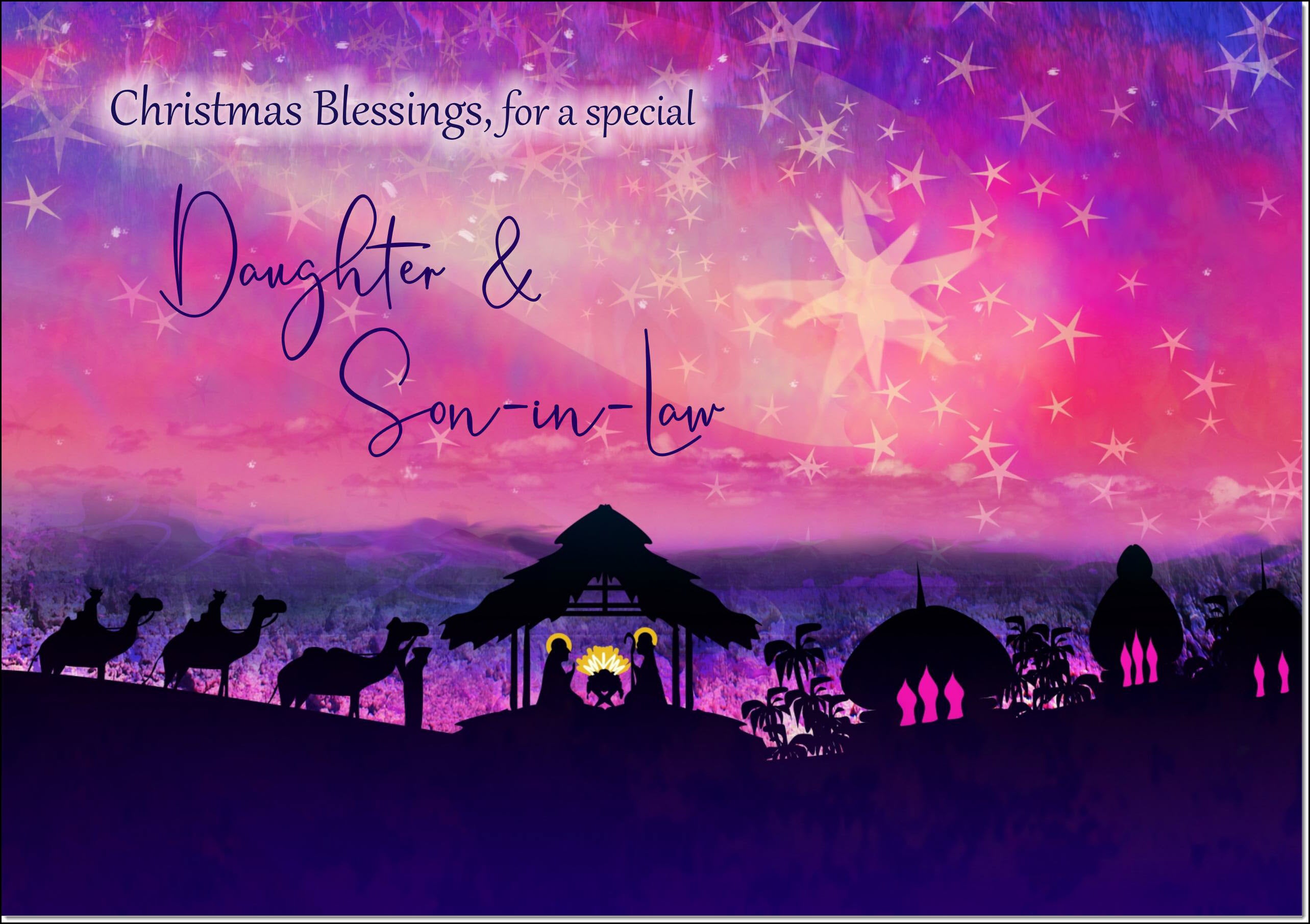 Daughter & Son-in-Law Christmas Card Nativity Scene Evening Watercolour