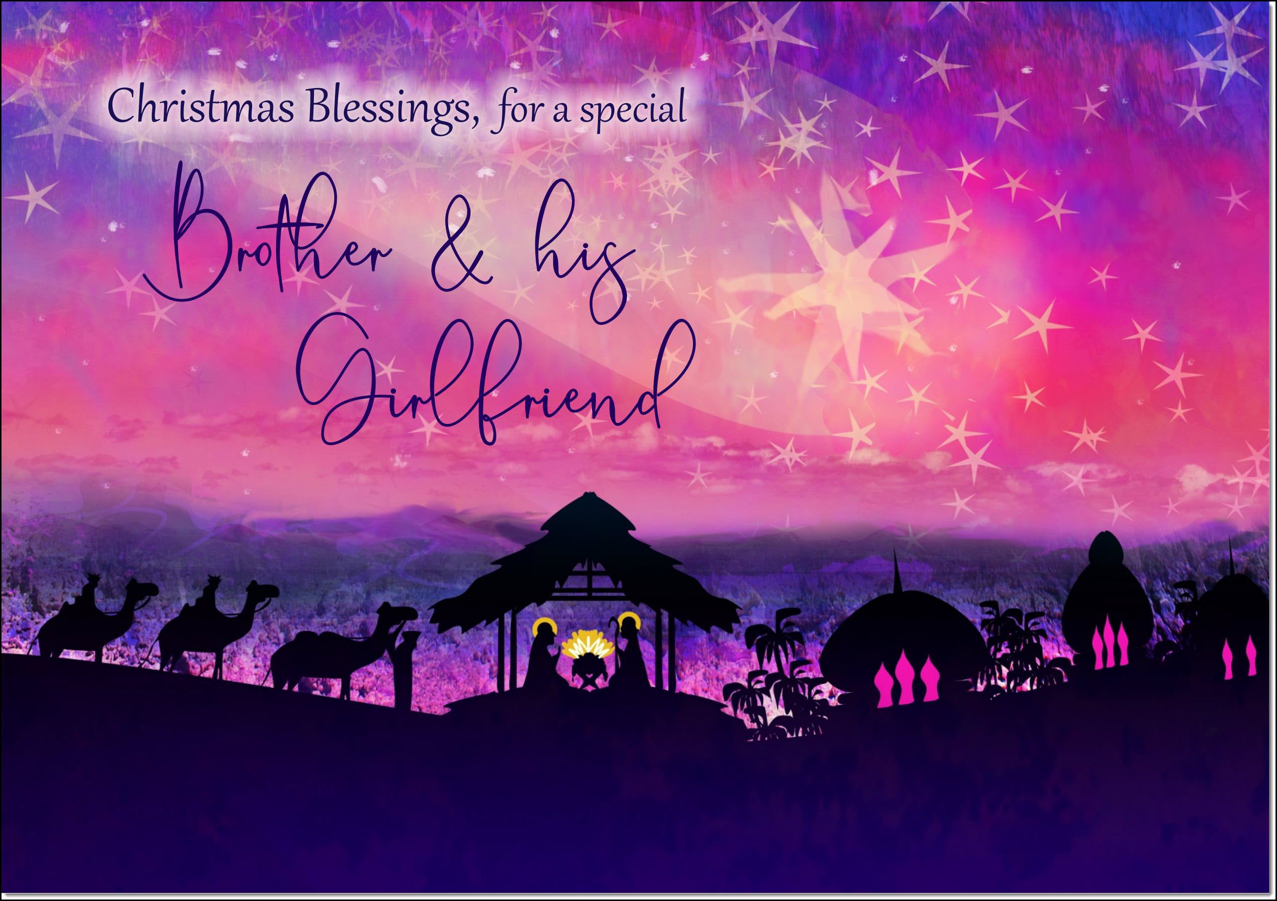 Brother & Girlfriend Christmas Card Nativity Scene Evening Watercolour