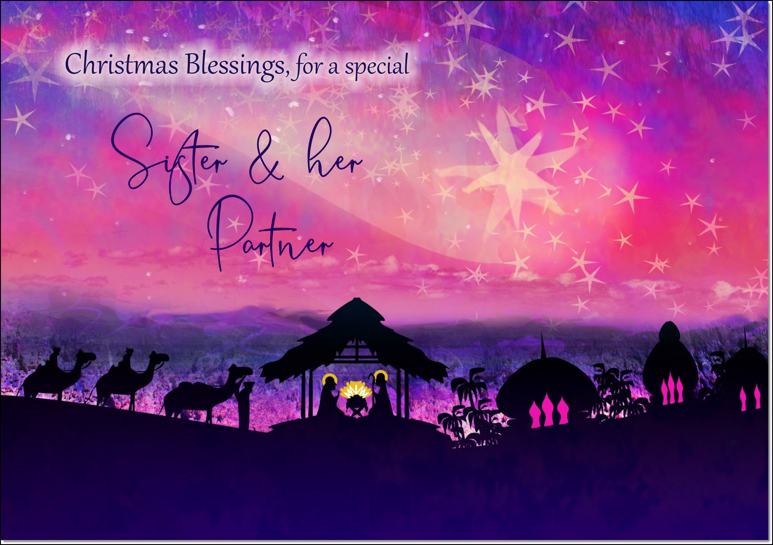 Sister & Partner Christmas Card Nativity Scene Evening Watercolour