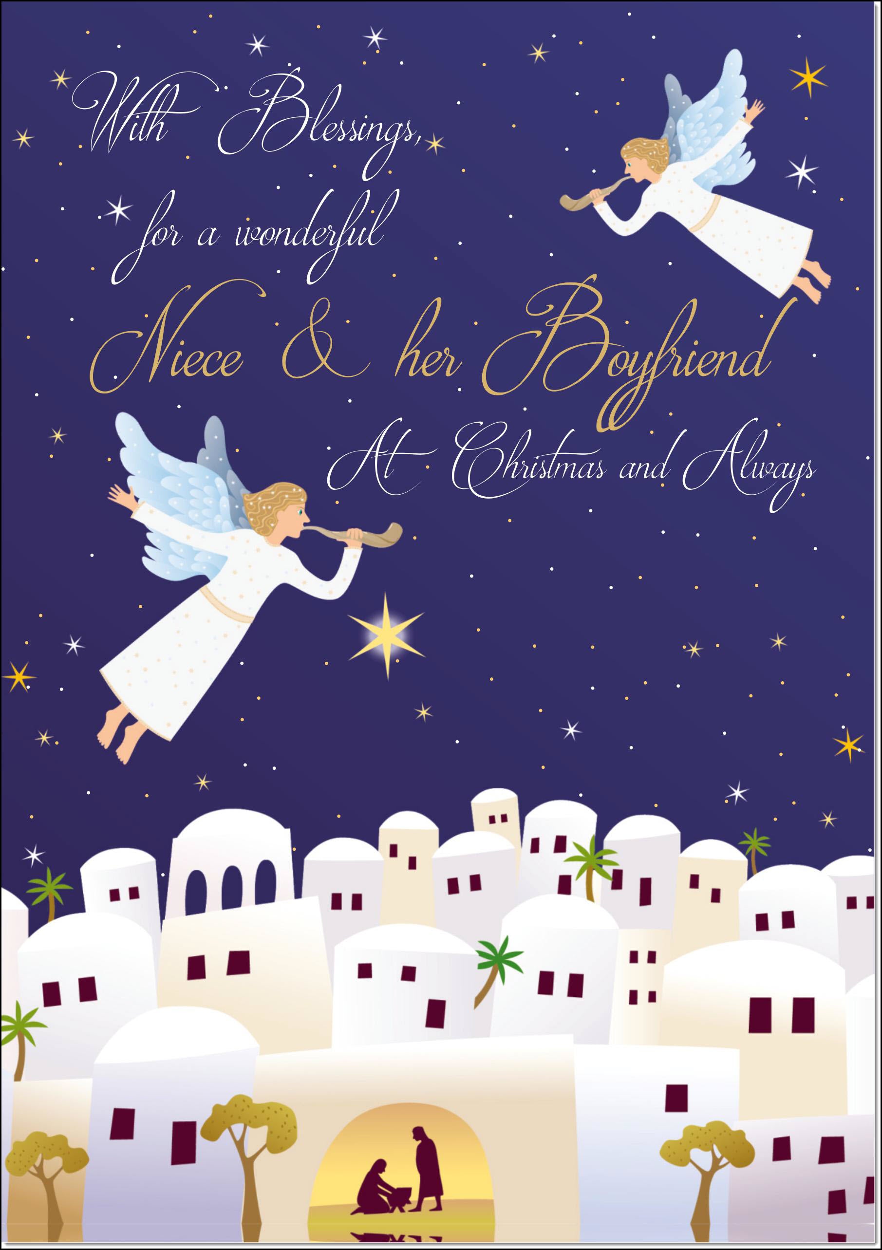 Niece & Boyfriend Christmas Card Nativity Scene Angels Bethlehem