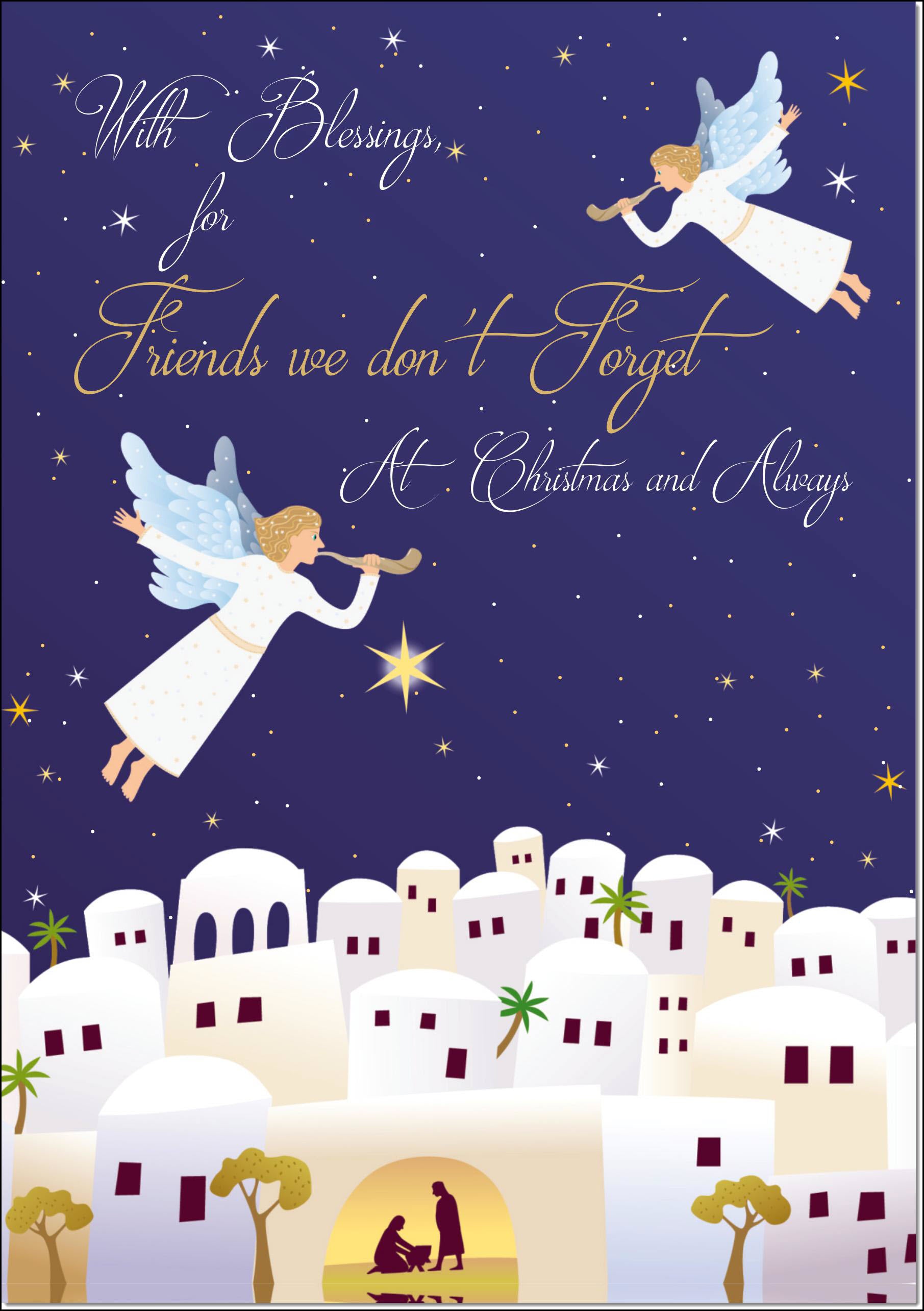 Friends We Don't Forget Christmas Card Nativity Scene Angels Bethlehem